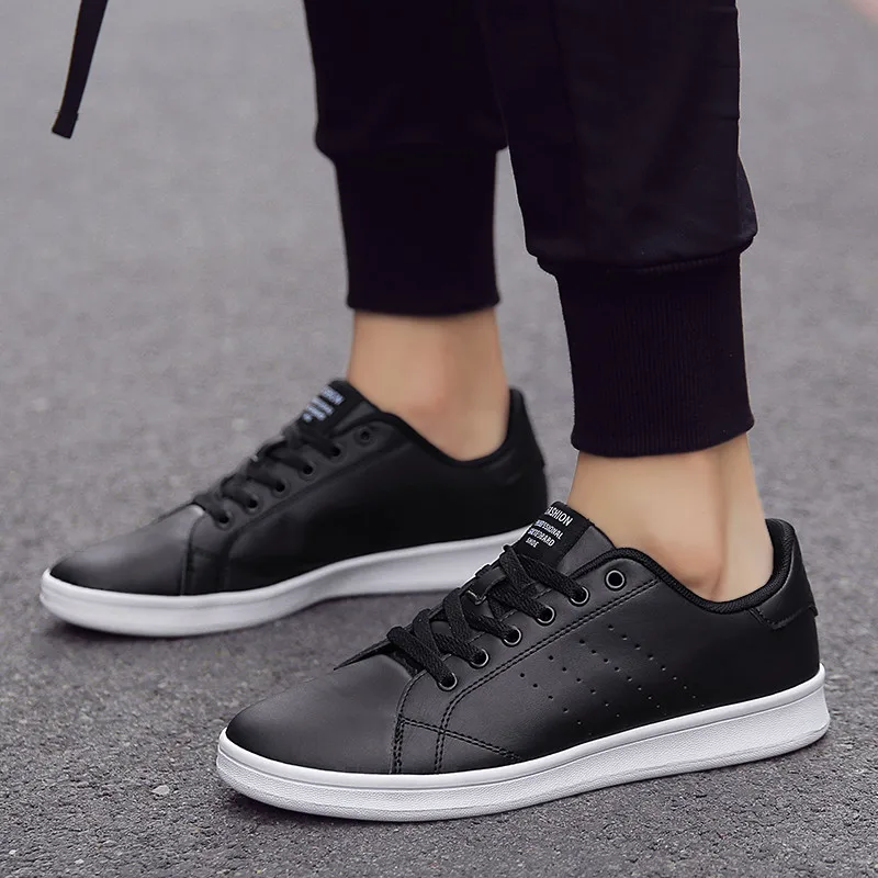 Кроссовки мужские кожаные на шнуровке, Повседневная легкая прогулочная обувь, модные черные Сникерсы для пар