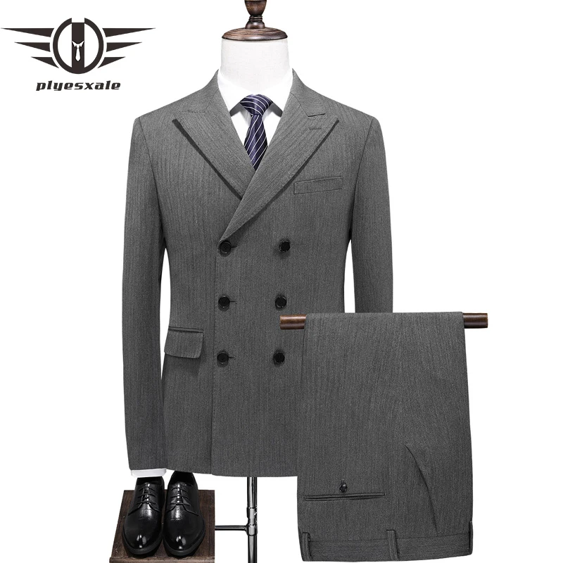 Для мужчин s двубортный костюм 3 шт. темно-серый 2021 Новый Стиль Slim Fit Для мужчин костюм для Свадебная вечеринка для выпускного вечера вечерний костюм-двойка мужской 5XL Q699