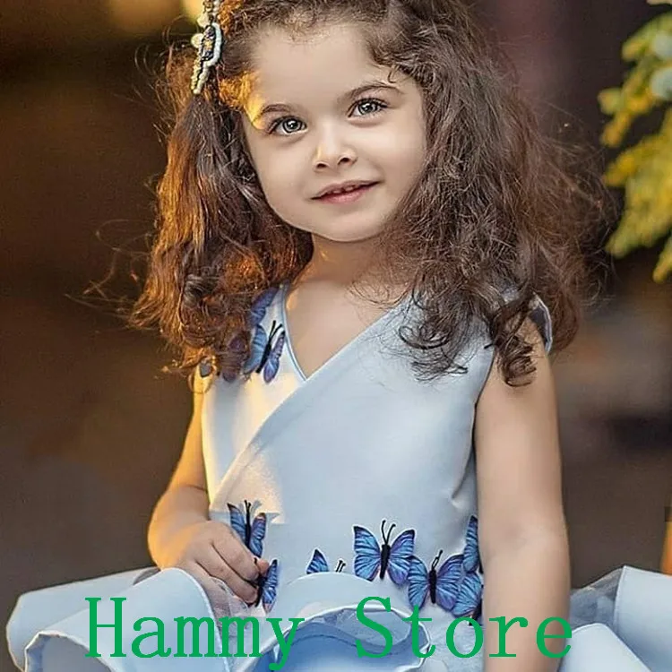 Детское синее кружевное платье с цветочным рисунком, платье для девочек на свадьбу, день рождения, платье для первого причастия, 2020