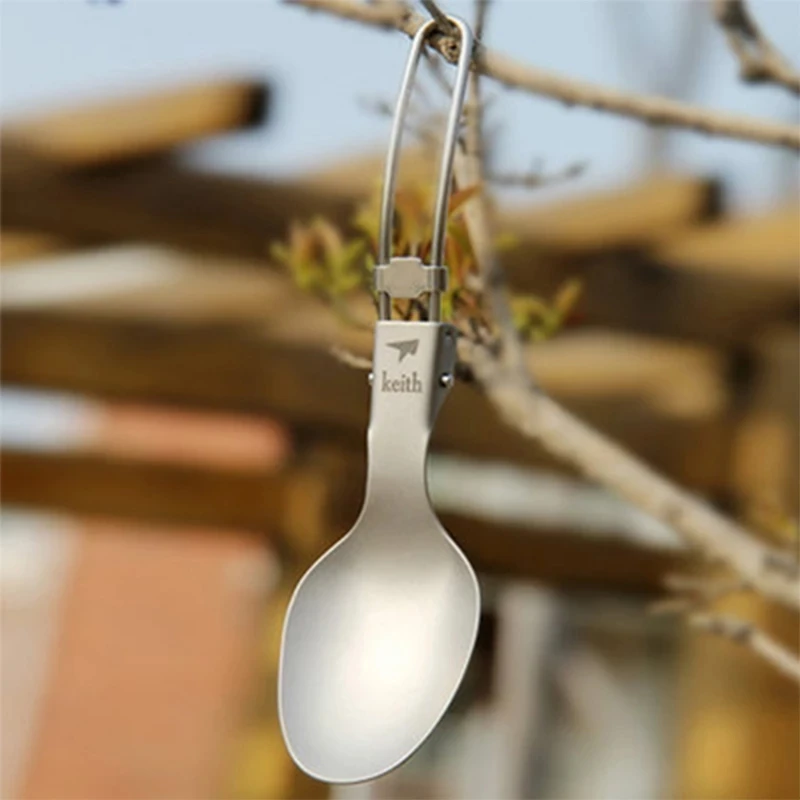 Портативная Складная Титановая Ложка Keith, наружная столовая посуда для кемпинга, 20 г, кухонная посуда с сумкой для хранения Ti5308