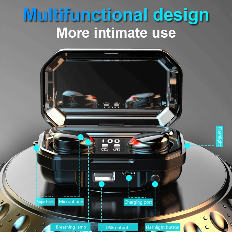 TWS Bluetooth-наушники с шумоподавлением и светодиодный фоном