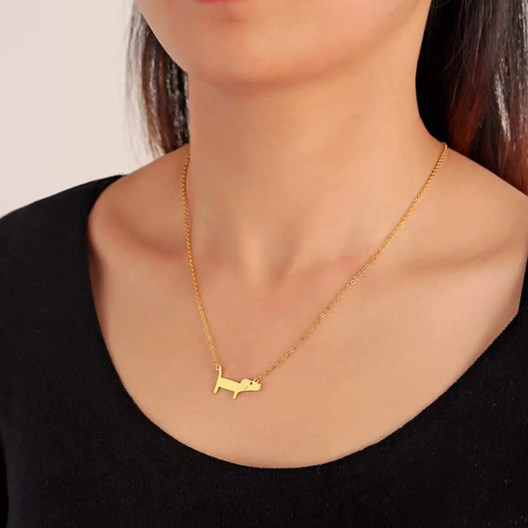 Ручной работы такса Винер собака ожерелье Золотая цепочка с подвеской для домашних животных безопасный любитель животных силуэт в форме сердца кулон ожерелье подарок для девочек