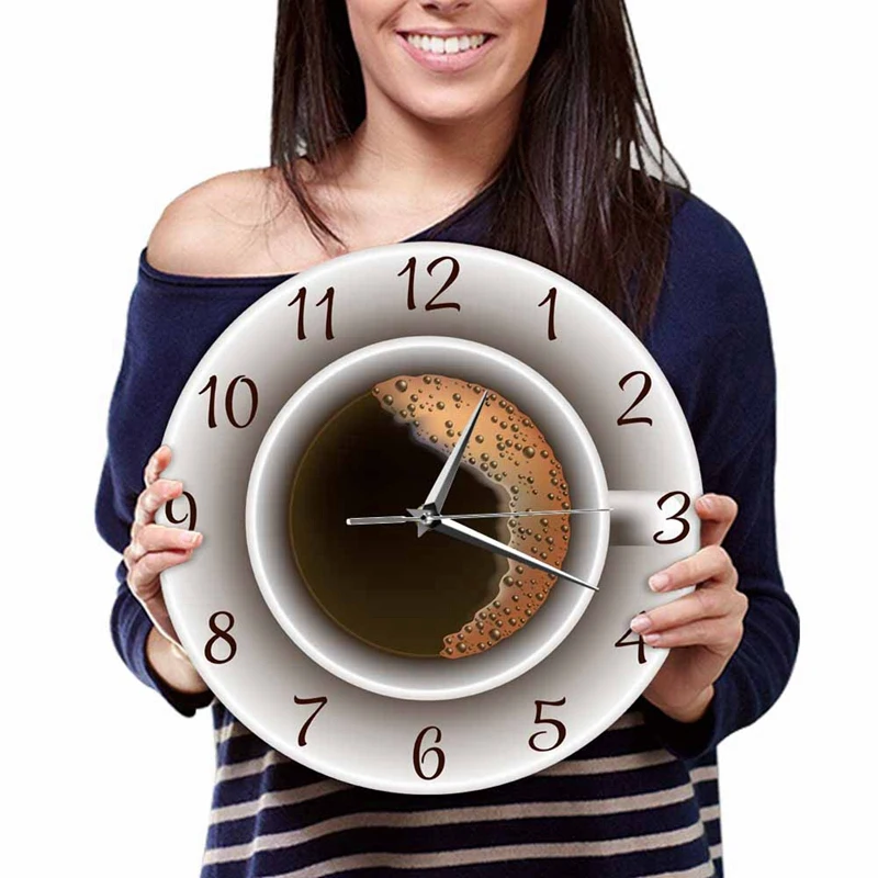 Чашка кофе с пеной декоративные бесшумные настенные часы декор кухн...