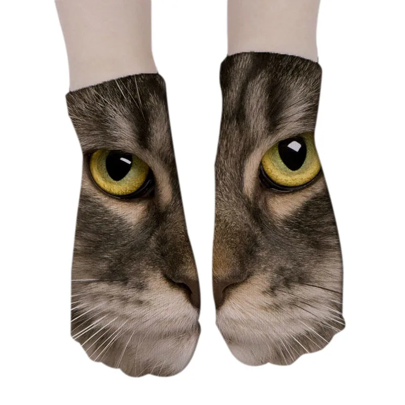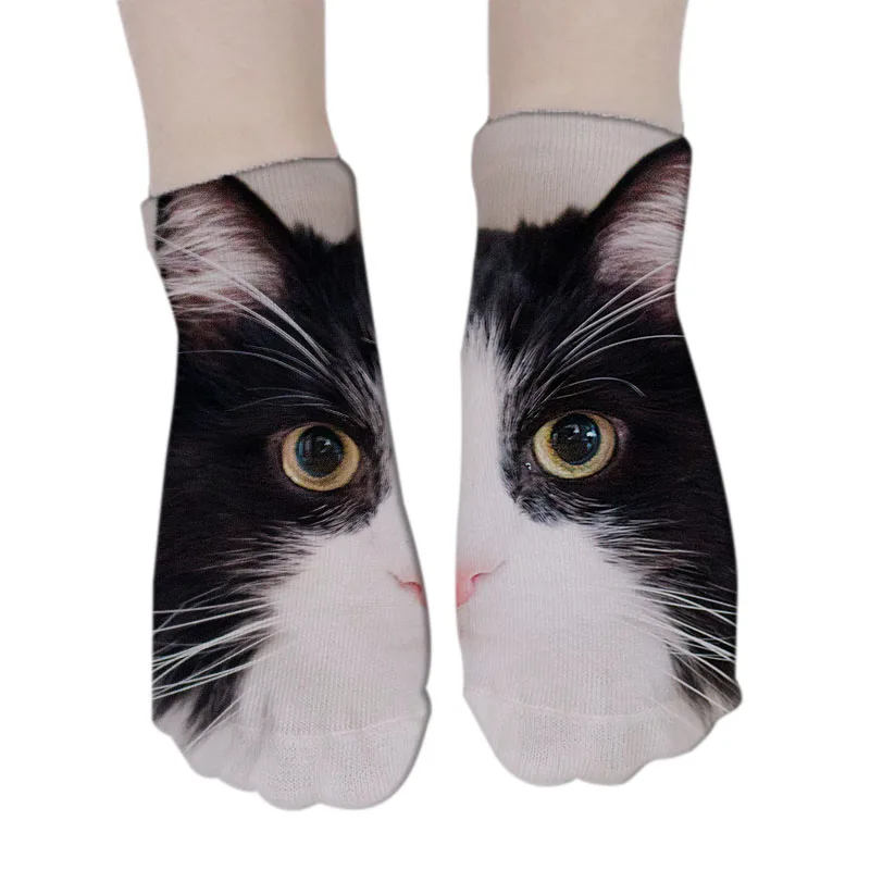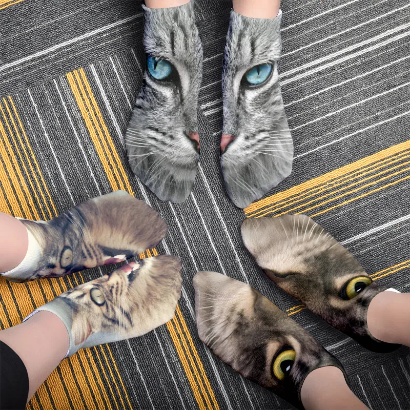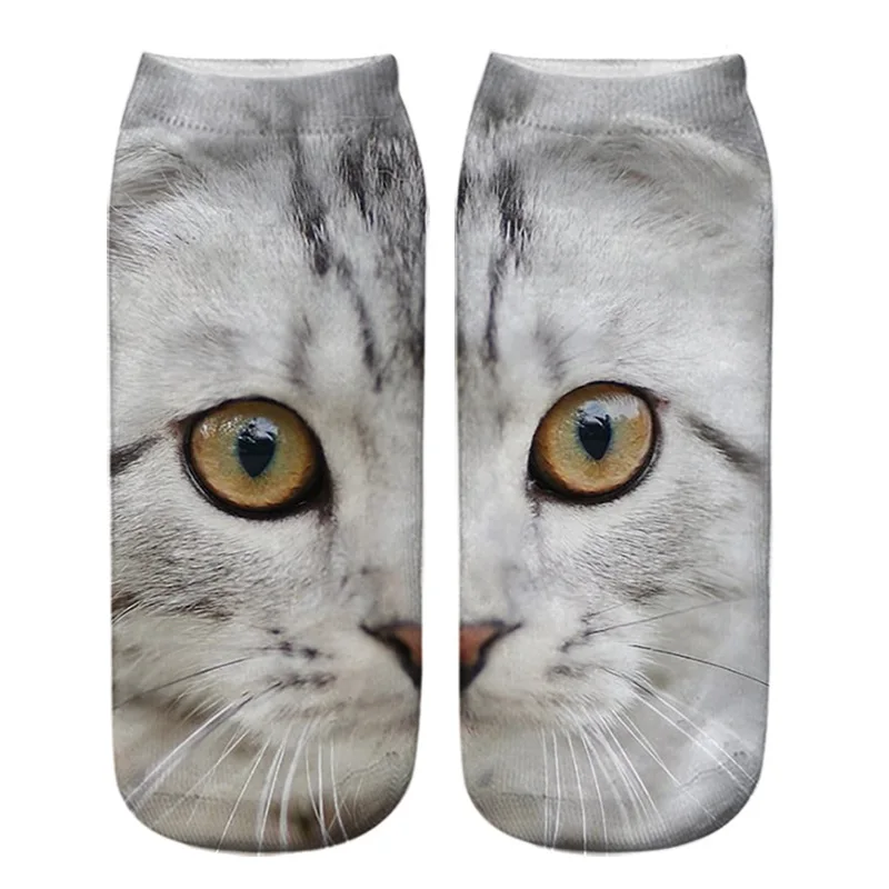 Новинка, женские носки с 3D принтом кошачьего лица, модные хлопковы...