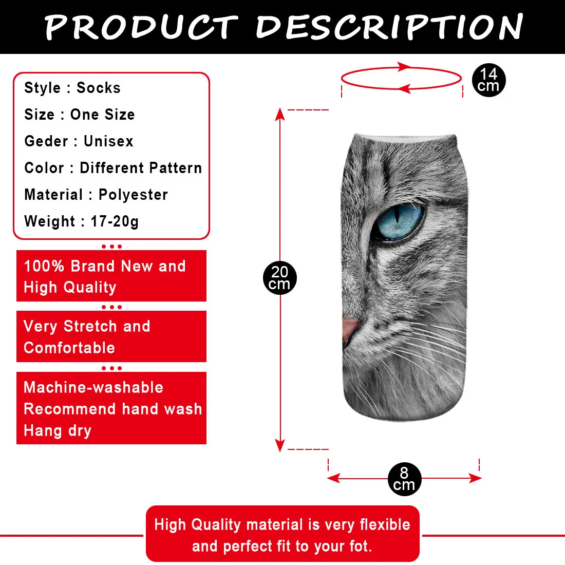 Новинка, носки с 3D принтом кота, летние короткие мужские носки с м...
