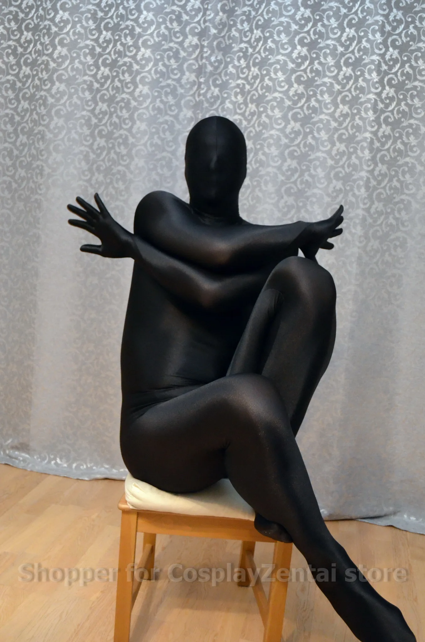 Это высококачественный спандекс. Костюм zentai Fullbody изготовлен из эластичного, дышащего спандекса, который можно стирать вручную. Черный цвет легко сочетается с другими предметами. Костюм из плотного зентая имеет дизайн с открытыми глазами, который хорошо просвечивает. Разработан дизайн отдельных пальцев. Мы также можем изготовить Детский костюм zentai.