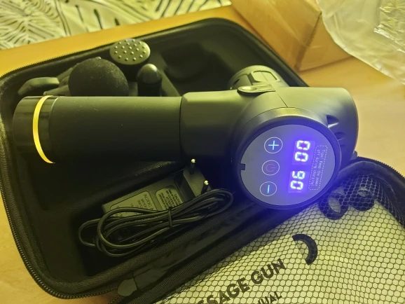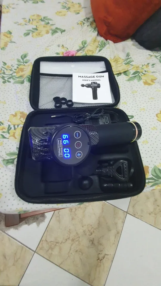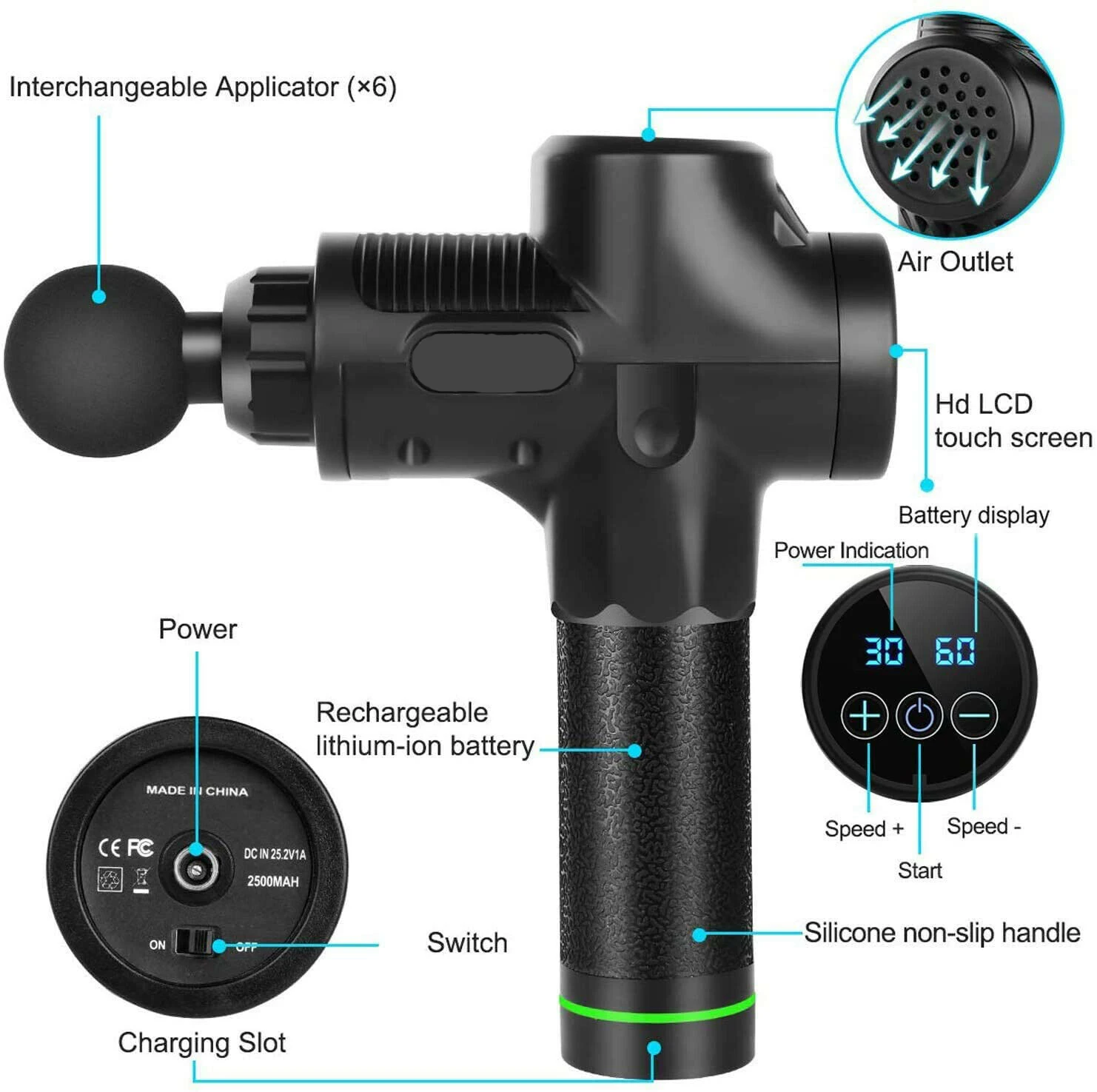 Массажный пистолет электрическая фритюрницаМассажер для снятия боли в релаксации тренировки фитнес ЖК-дисплей Дисплей с переносная сумка