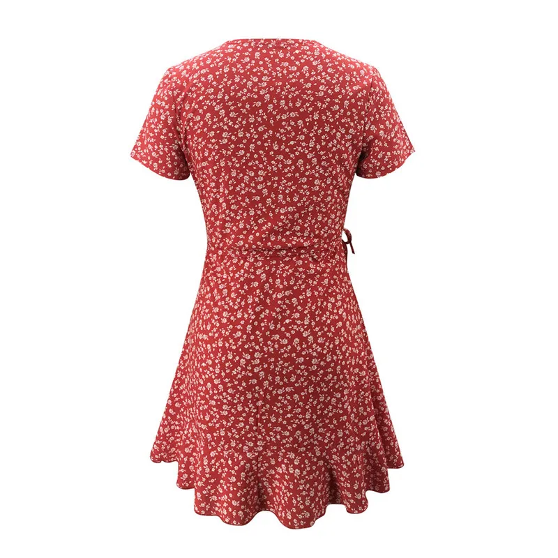 Платье женское с V-образным вырезом, пикантный пляжный сарафан-трапеция в горошек, в стиле бохо, с оборками, с коротким рукавом, мини-платье, сарафан, лето 2021