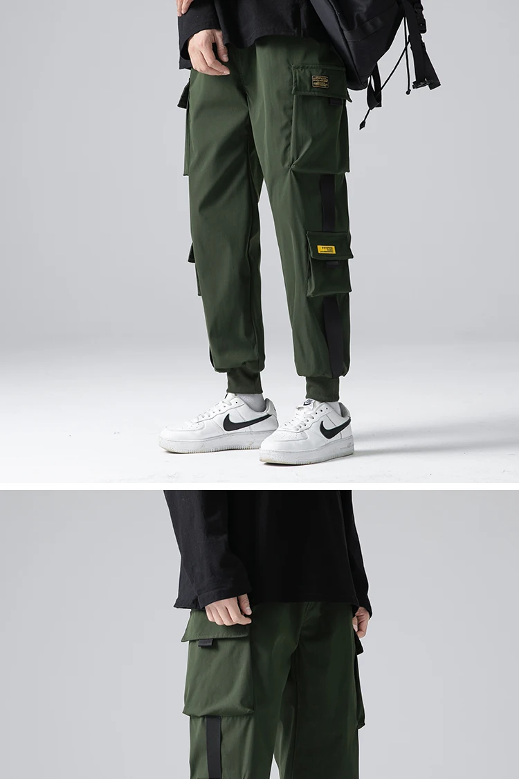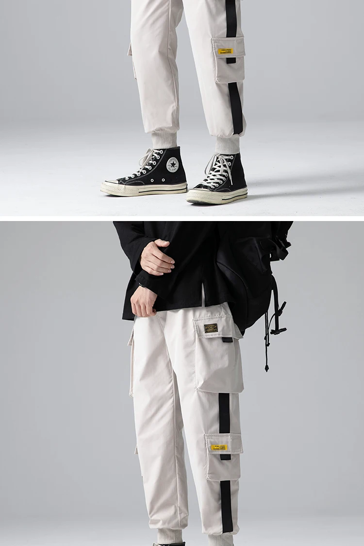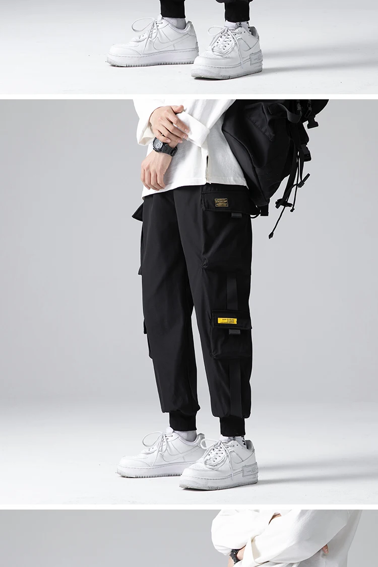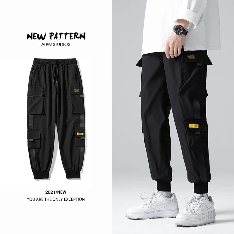 Джоггеры-шаровары с лентами, мужские брюки-карго, уличная одежда 20...