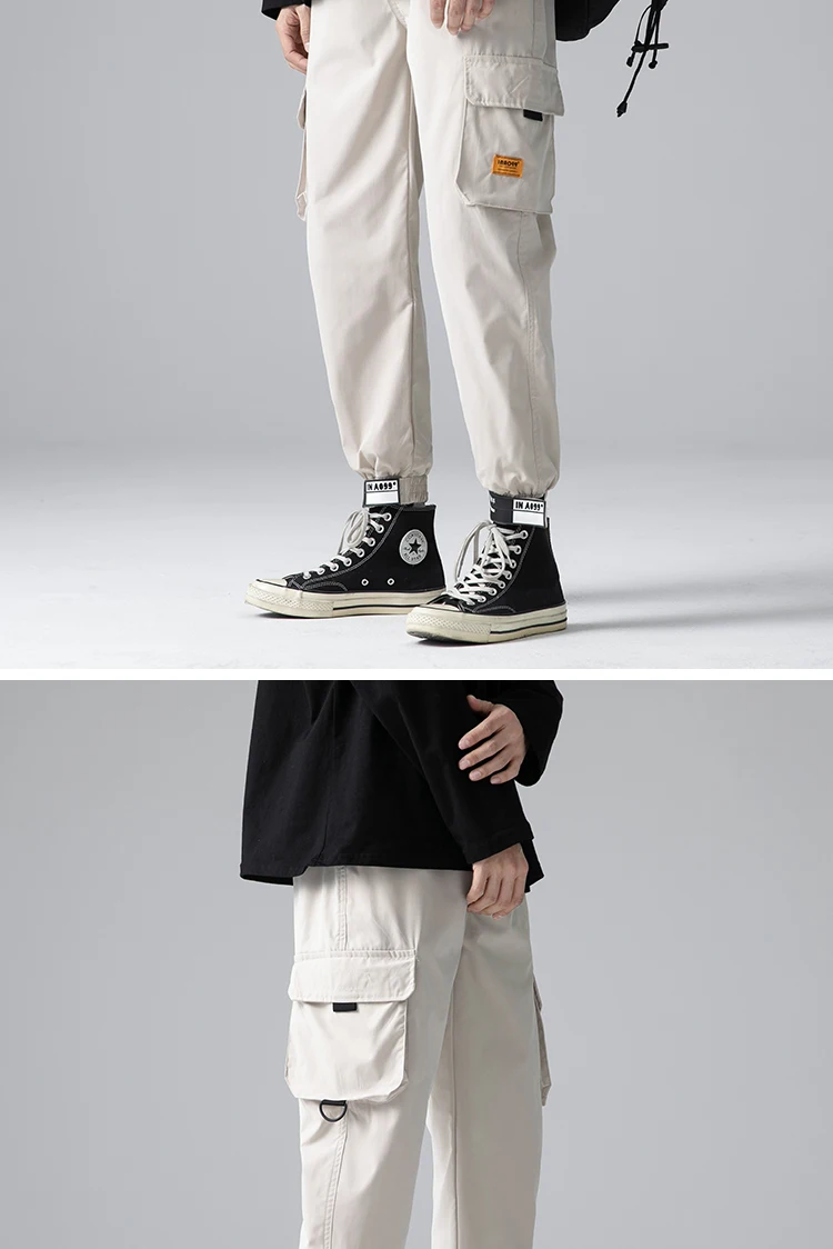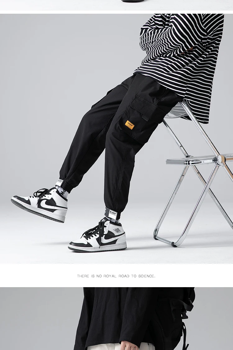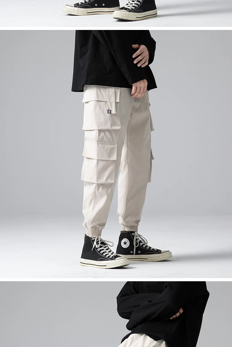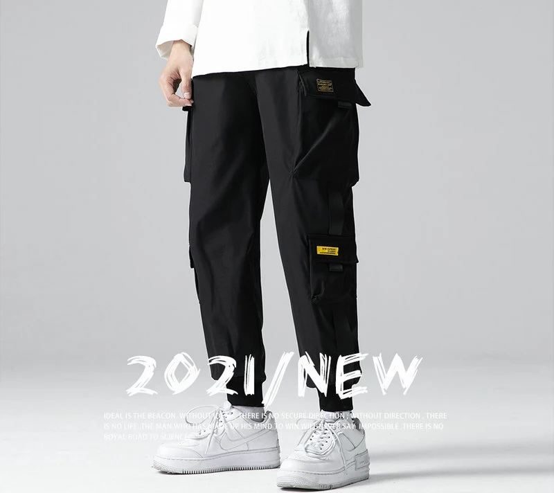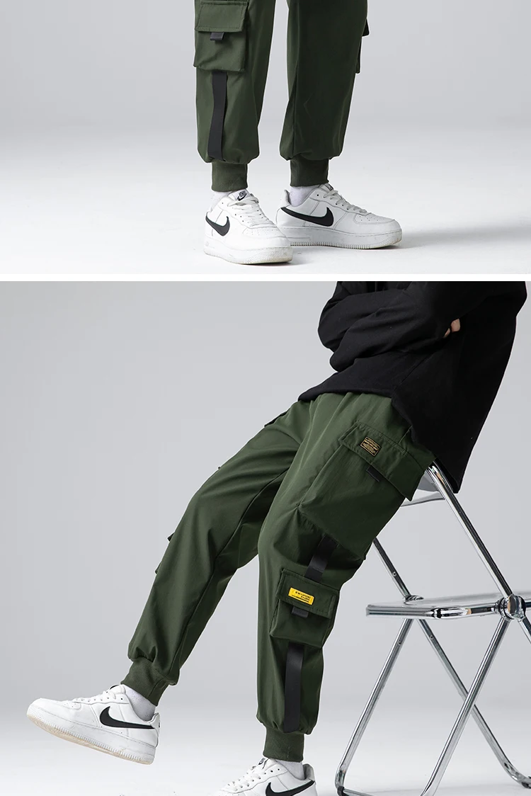 Джоггеры-шаровары с лентами, мужские брюки-карго, уличная одежда 20...