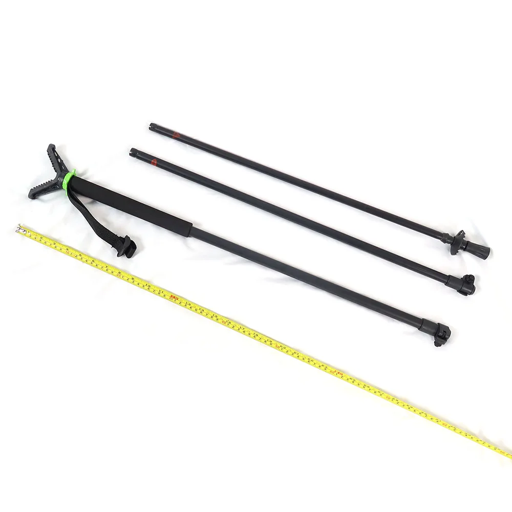 ● Три секции, алюминиевые, Телескопические ножки.● Быстроразъемные зажимы для ног позволяют ногам легко выдвигаться и надежно фиксировать на месте.● Выдвигается от 90 см до 190 см.● Может использоваться в сидении, на коленях или в положении стоя.● Поставляется со съемным V-образным верхом и съемными ремешками на запястье.
