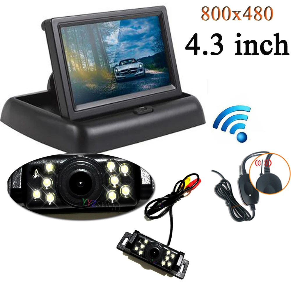 Автомобильный монитор с ЖК-дисплеем, система мониторинга парковки с ночным видением и коротким номерным знаком, камера заднего вида, Беспроводное видео 4,3