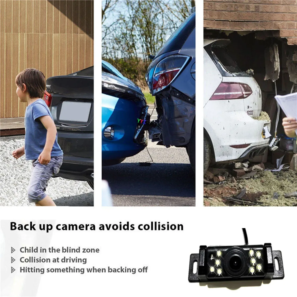 Автомобильный монитор: -4,3 дюймовый цветной TFT ЖК-дисплей монитора. -С 2-полосная аудио-видео входа: А. AV1 (желтый) отображается по умолчанию, он может быть подключен к автомобильному DVD, видеомагнитофону и другому видео оборудованию; AV2 (белый) подключен к камере заднего вида транспортного средства. B. При реверсе монитор автоматически переключается на изображение заднего вида. -Нет аудиовхода или выхода. -Экран черного цвета, когда нет видео сигнала. -Складная конструкция для удобного места. Характеристики: -Режим сигнала: аналоговый сигнал -Экран Размер: 4,3 дюймов -Соотношение сторон экрана: 16:9 экран -Разрешение: 800x480 -Формат видео: NTSC/PAL -Рабочее напряжение: 9 В постоянного тока-32 В -Рабочая температура (Deg.C): -40 ~ + 80 -Размеры: 4,3x5,25x4,25 дюйма (в x Ш x д, примерный) Автомобильная камера заднего вида 9 светодиодный Особенности 1. Защита от атмосферных воздействий, может использоваться как в автомобиле, так и дома 2. Включает в себя 9 светодиодный, поддержка ночного видения в пределах 3 метров 3. Датчик изображения CCD 4. Поддержка видео системы NTSC 5. Высокое разрешение и широкий угол обзора 6. Подходит для различных транспортных средств: автомобилей, грузовиков, RV, мини-фургонов и т. д. 7. Легко установить, вы можете установить монитор через держатель или универсальный кронштейн 8. Может помочь избежать происшествий и несчастных случаев Характеристики: Эффективные пиксели: 648X488 Датчики изображения: CCD Минимальная освещенность: 1.5Lux / F1.2 Отношение S/N: >48 дБ Видеовыход: RCA, 1.0VP - P. 75 Ом Рабочее напряжение: DC12V Водонепроницаемость: IP66 Тип: камера заднего вида Уровень водонепроницаемости: IP66 Разрешение: 480TV линии Подключение: провод Формат видео: NTSC, PAL Соотношение S/N: 48 дБ Рабочая температура: -20 °C + 80 °C RH95 % Температура хранения: -30 °C + 80 °C Рабочая мощность (DCV): 12 В Потребление тока: 90 мА Макс Посылка Вес: 0,19 кг