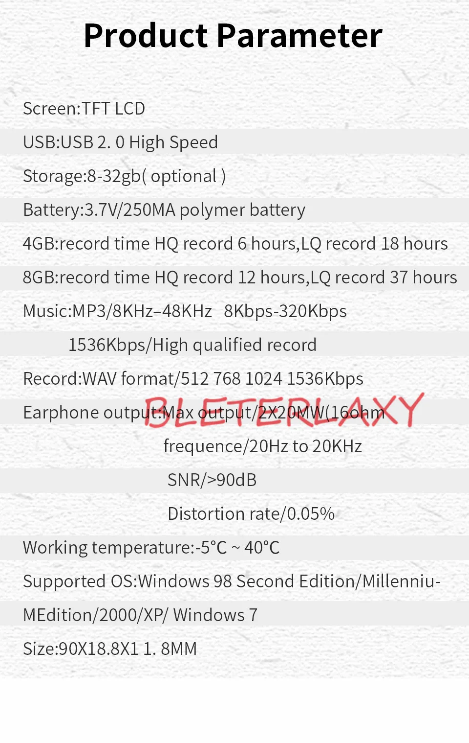 5: запись без потерь, 1536kbps-3072kbps, WAV и MP3 двойные форматы записи без потерь могут свободно переключаться. Максимальная скорость восстановления в формате MP3 составляет 384 кбит/с, а в формате wav-3072 кбит/с