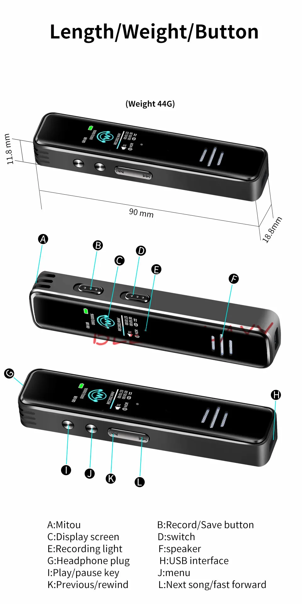 Диктофон, цифровой диктофон с голосовой активацией, запись звука на большие расстояния, mp3-плеер, шумоподавление, WAV запись с IPS-экраном