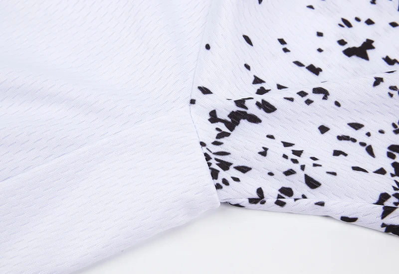 Ткань одежды изготовлена из полиэфирной сетки, которая хорошо впитывает пот и пропускает воздух, и в то же время обладает высокой эластичностью и эластичностью, что делает ношение более комфортным и близким к телу. Ткань имеет охлаждающий эффект и функцию дезодоранта.
