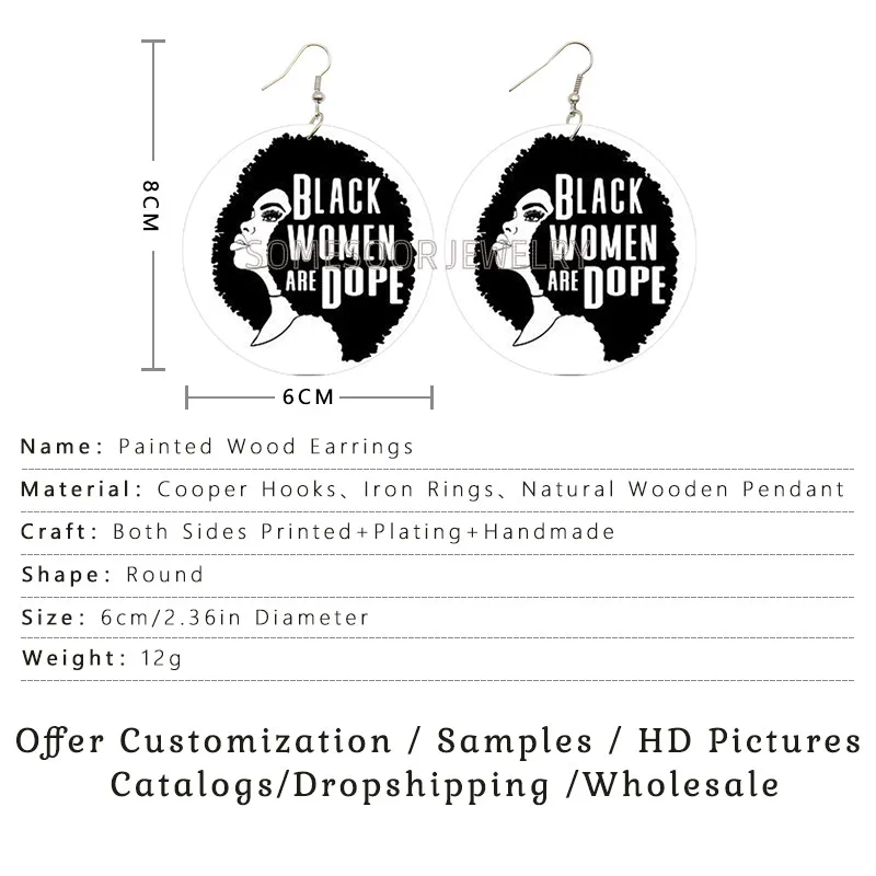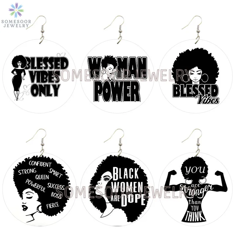 SOMESOOR меланин поппин королева вьющиеся деревянные висячие серьги...