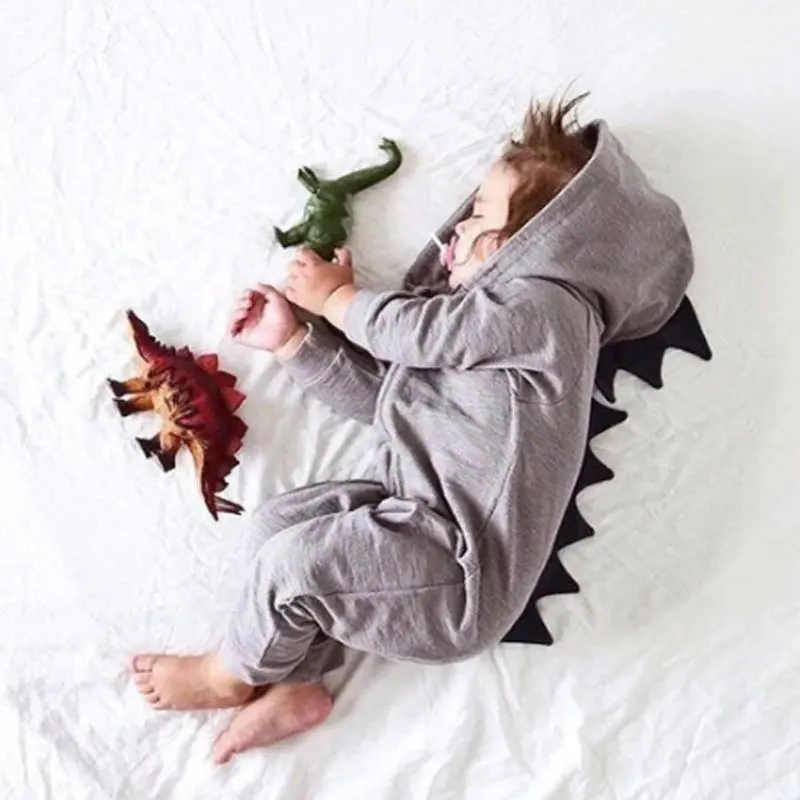Детские комбинезоны с мультипликационным динозавром, Одежда для новорожденных девочек на весну и осень, хлопковая толстовка с длинным рукавом, одежда для маленьких мальчиков от 0 до 18 месяцев