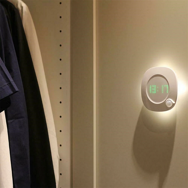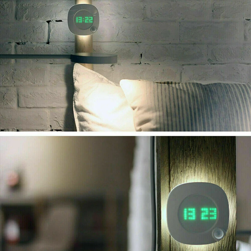 Новейший светодиодный умный ночник, индукция человеческого тела, дисплей времени, магнитный настенный светильник для спальни