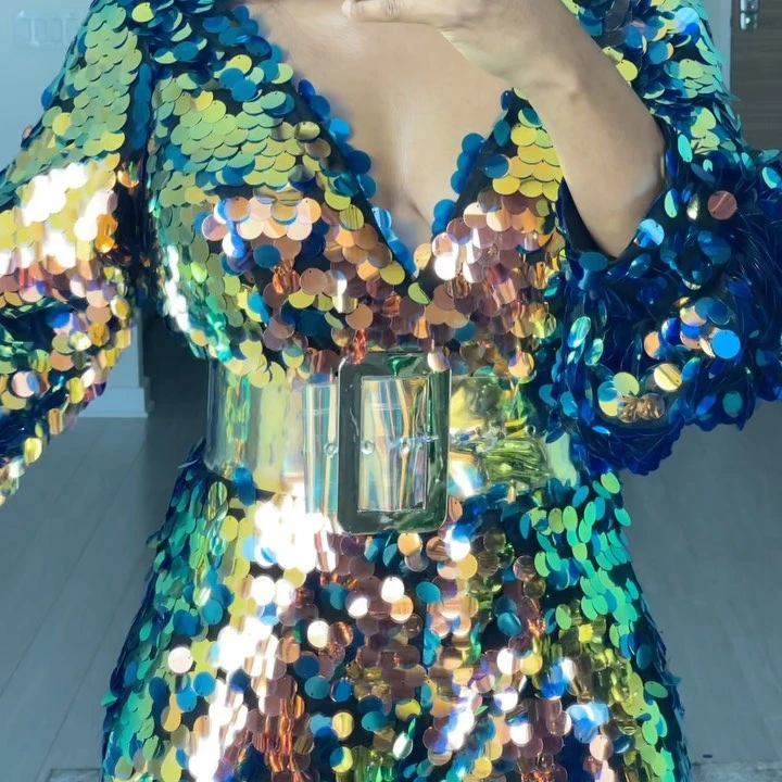 Блестящее черное вечернее платье с блестками и поясом, соблазнитель...