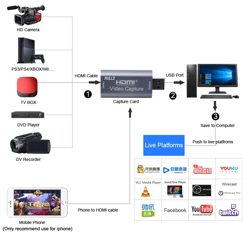 Карта видеозахвата, 1080p, 60 кадровс, HDMI на USB 3,0, 2,0