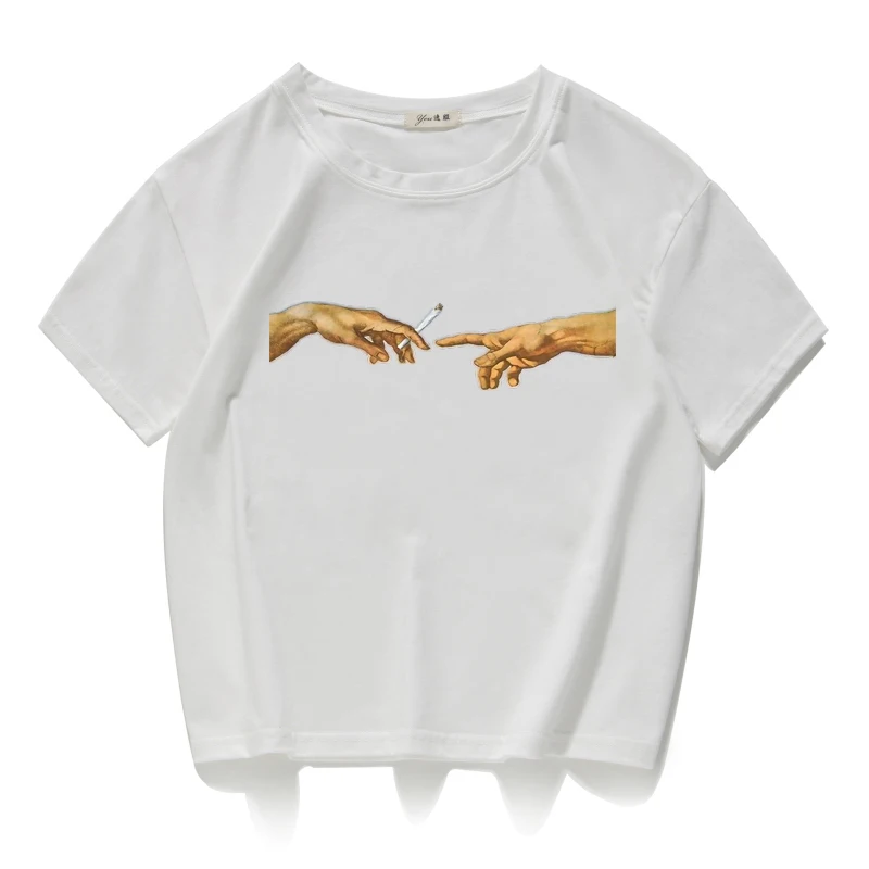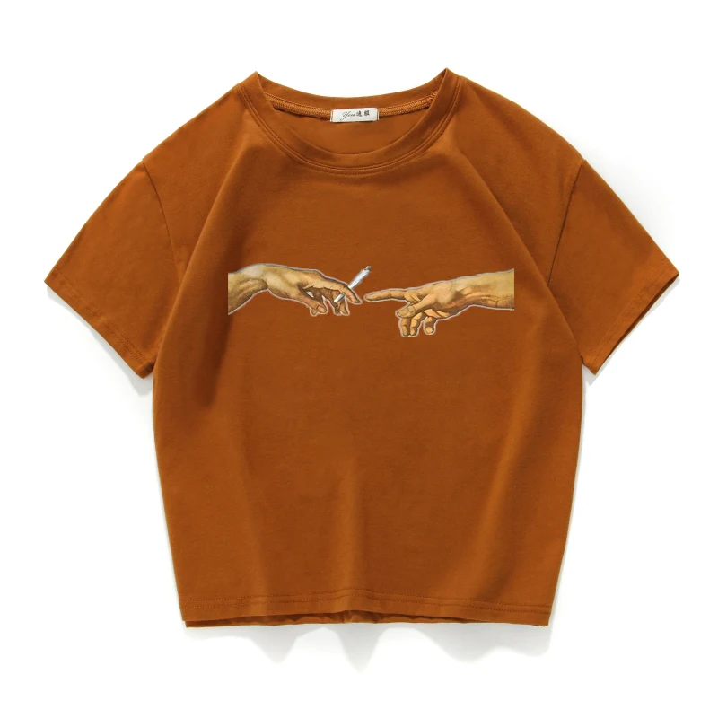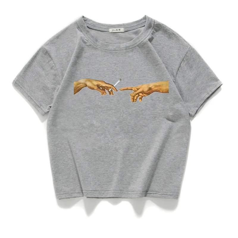 Забавный кроп-топ с принтом человеческих рук и сигарет, повседневная короткая футболка из 100% хлопка, женские летние футболки, женская одежда в стиле Харадзюку
