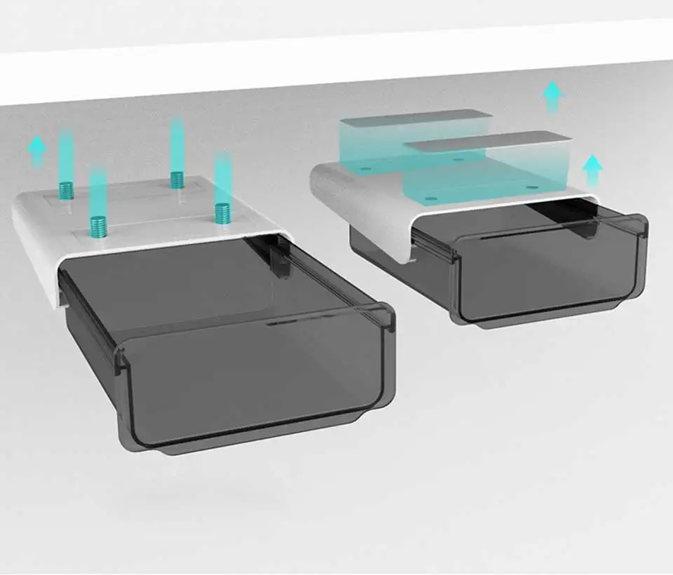 * Он спрятан в нижней части рабочего стола, экономит место, даже не входит в поле зрения, защищает ваши личные предметы хранения.