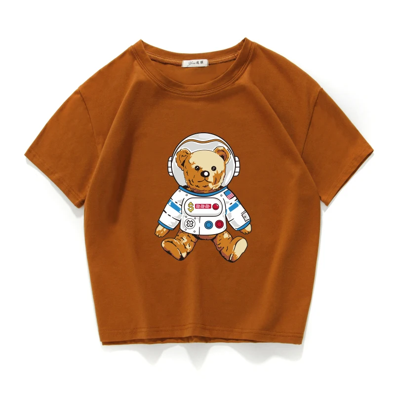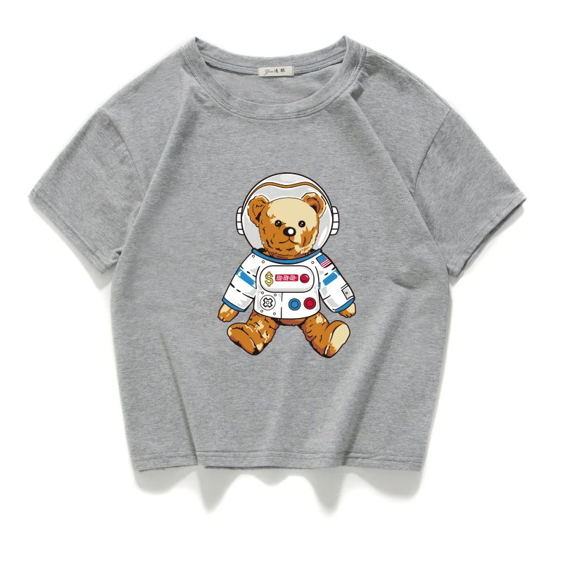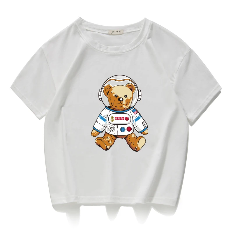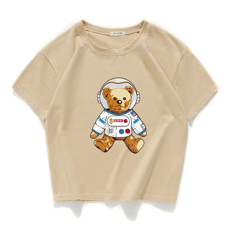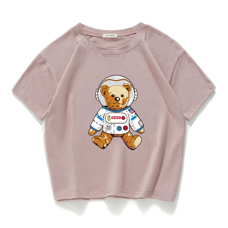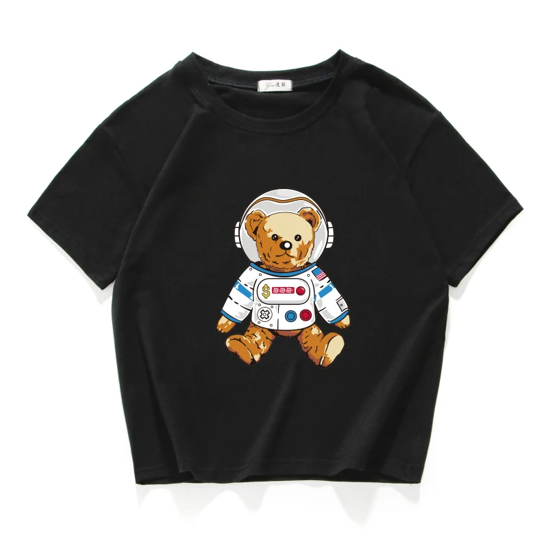 Короткий Повседневный Топ из 100% хлопка с изображением медведя, астронавта, космоса, женская футболка, женская одежда в стиле Харадзюку