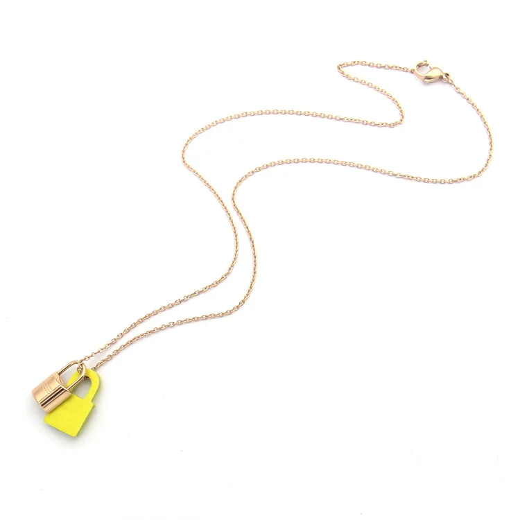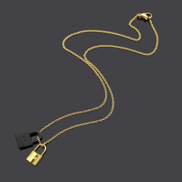 Ожерелье из нержавеющей стали с двойным замком, колье черного, красного, оранжевого, желтого цветов с кожаным замком, для мужчин и женщин, международная торговля