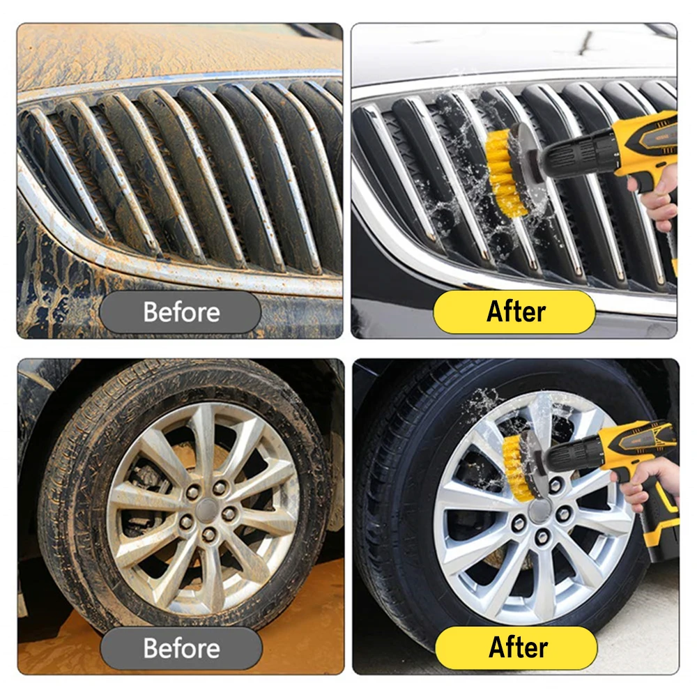Этот комплект содержит нейлоновые силовые щетки средней жесткости, которые будут прикреплены к вашему любимому беспроводному сверлу.