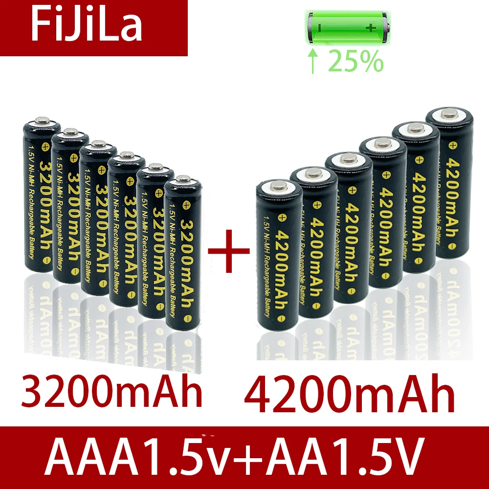 AA + AAA 100% Новый 1,5 в AA AAA Щелочная аккумуляторная батарея 3200-4200 мАч фонарь, часы, игрушки, mp3-плеер, Замена Ni-MH батареи