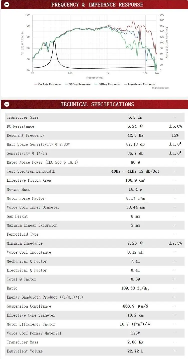 Оригинальный фотоэлемент Vifa NE180W-0804, 6,5 дюйма, фотоэлемент, неодимовый литый алюминиевый каркас, древесная целлюлоза, конус 8 Ом80 Вт, 1 шт.