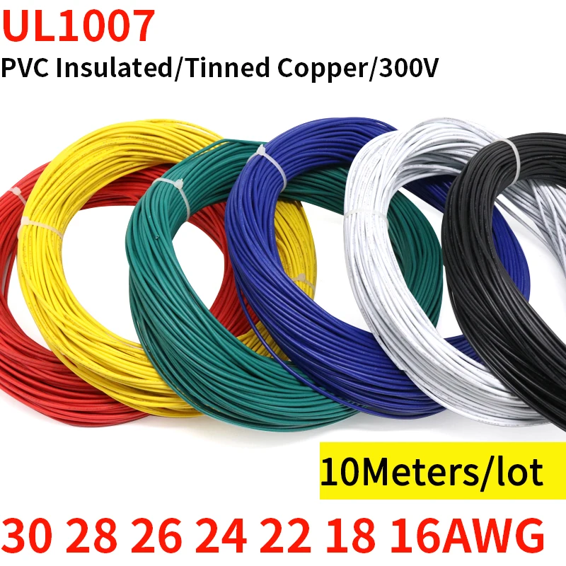 Кабель из луженой меди, ПВХ, 10 м, UL1007, 1618202224262830 AWG, белыйчерныйкрасныйжелтыйзеленыйсинийсерыйфиолетовыйкоричневыйоранжевый