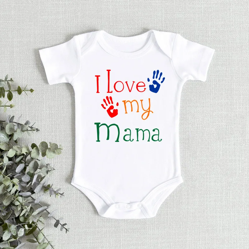 Комбинезон детский хлопковый с коротким рукавом и надписью I Love M...