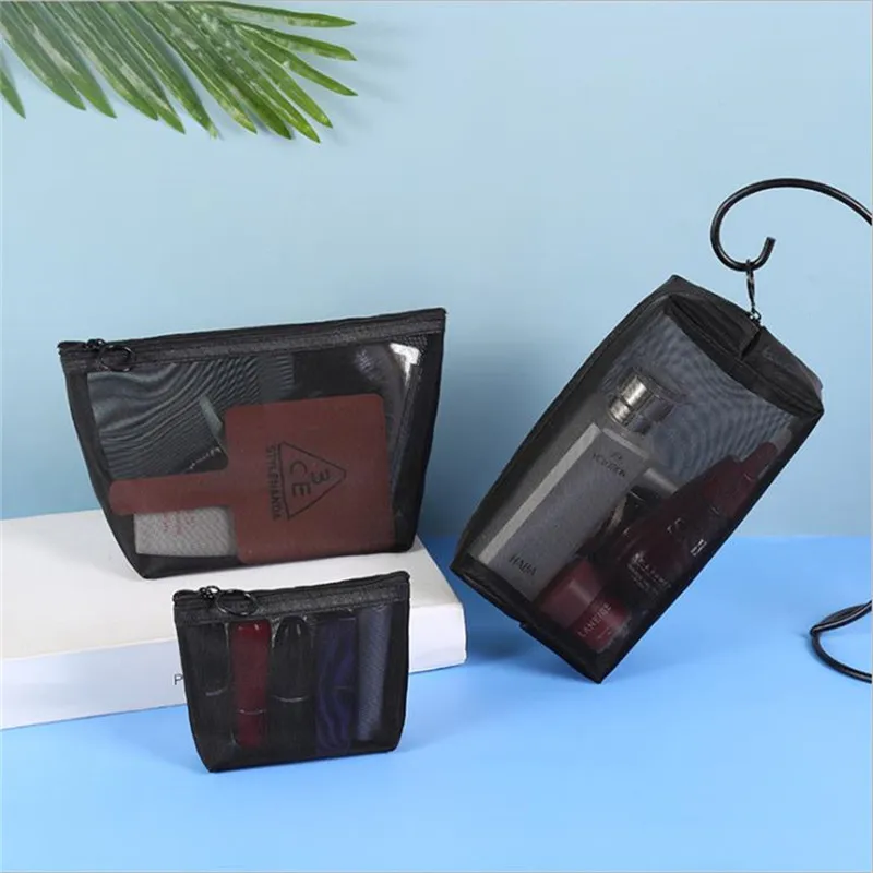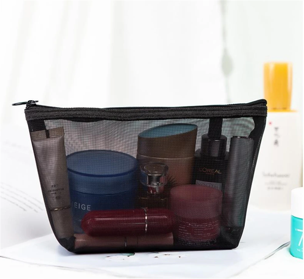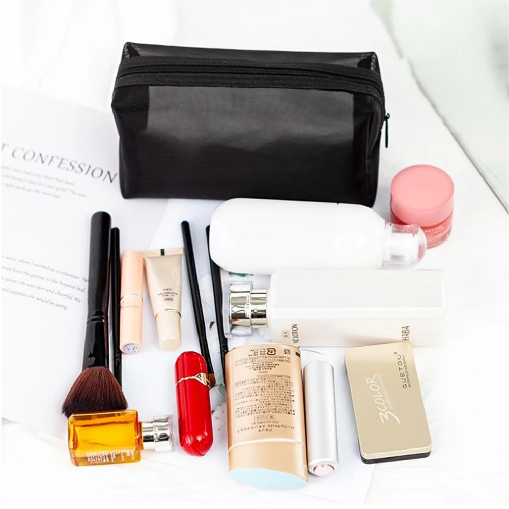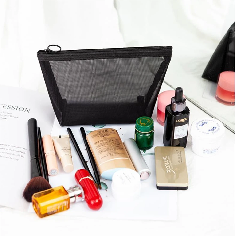 Вместительная косметичка для женщин, новый дорожный Чехол для хранения косметики, черный прозрачный сетчатый чехол для косметики, органайзер для туалетных принадлежностей
