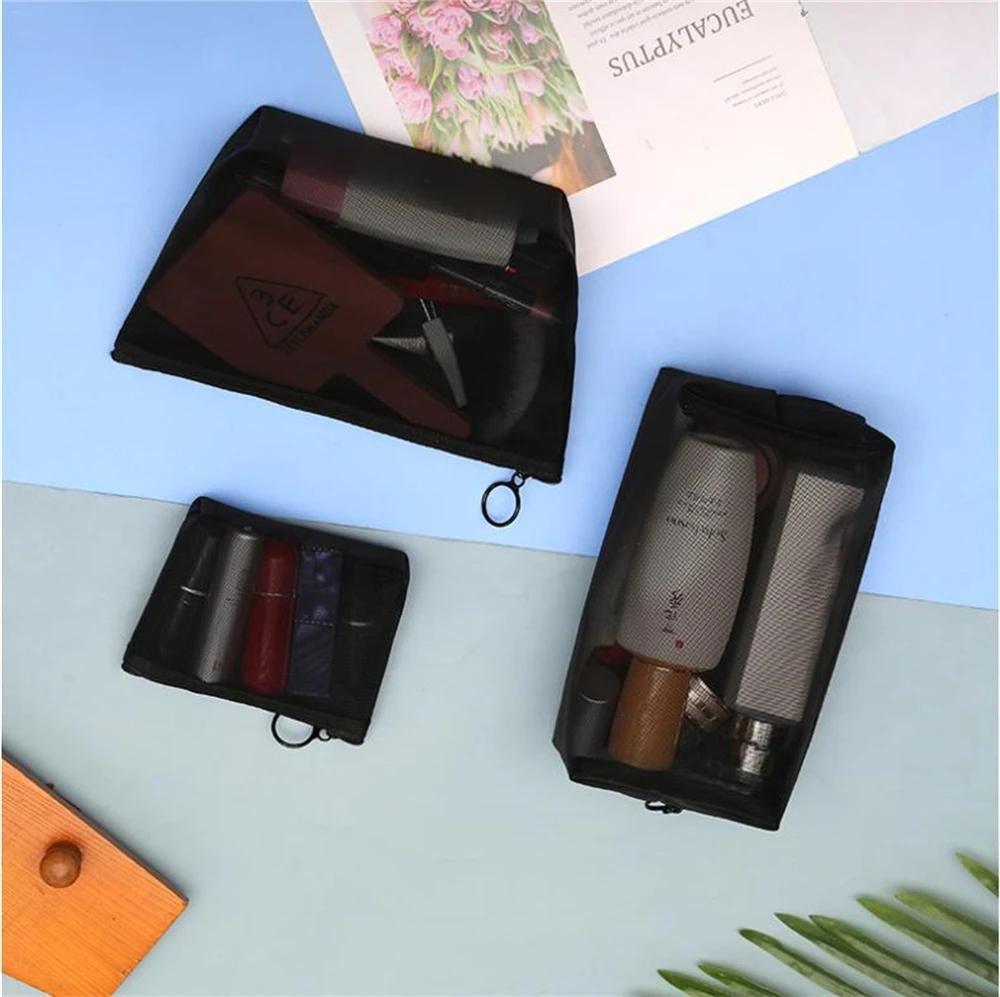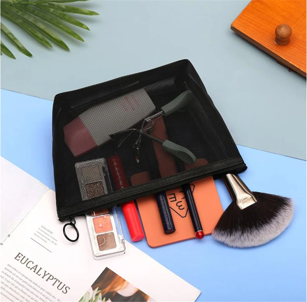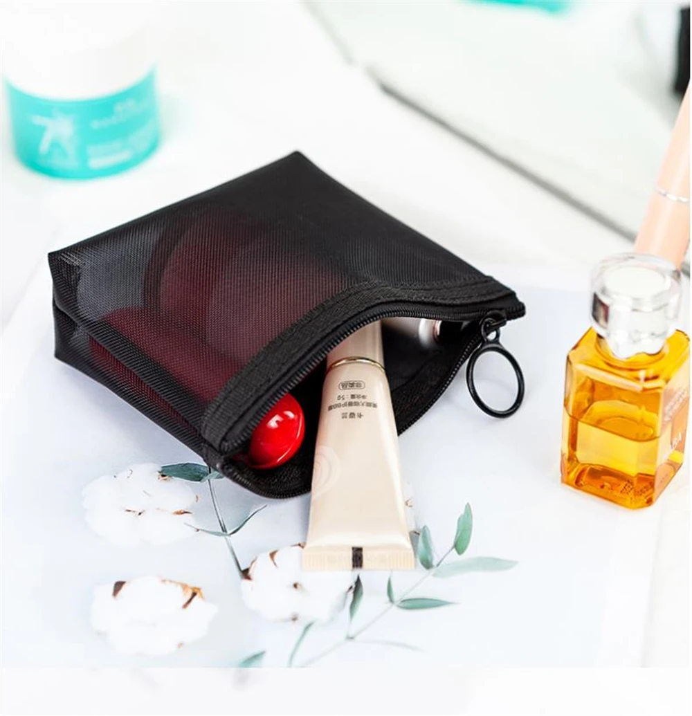 Вместительная косметичка для женщин, новый дорожный Чехол для хранения косметики, черный прозрачный сетчатый чехол для косметики, органайзер для туалетных принадлежностей
