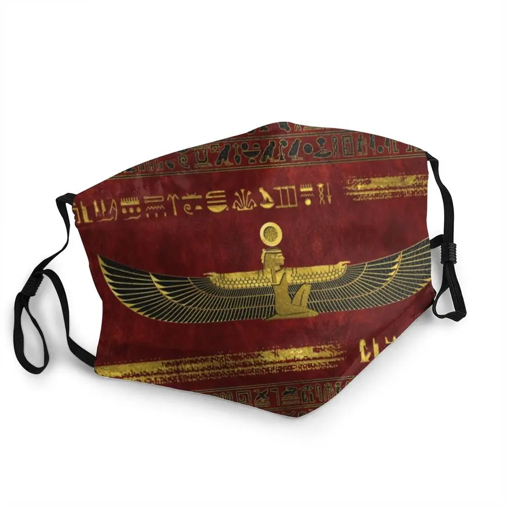 Золотая египетская маска для лица с орнаментом Бога, дышащая маска унисекс для взрослых, маска Фараона, хиероглифа, защитный респиратор, маска для рта