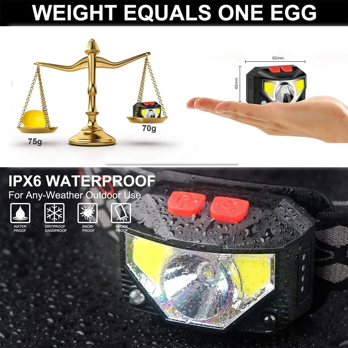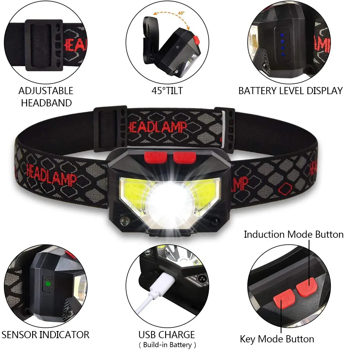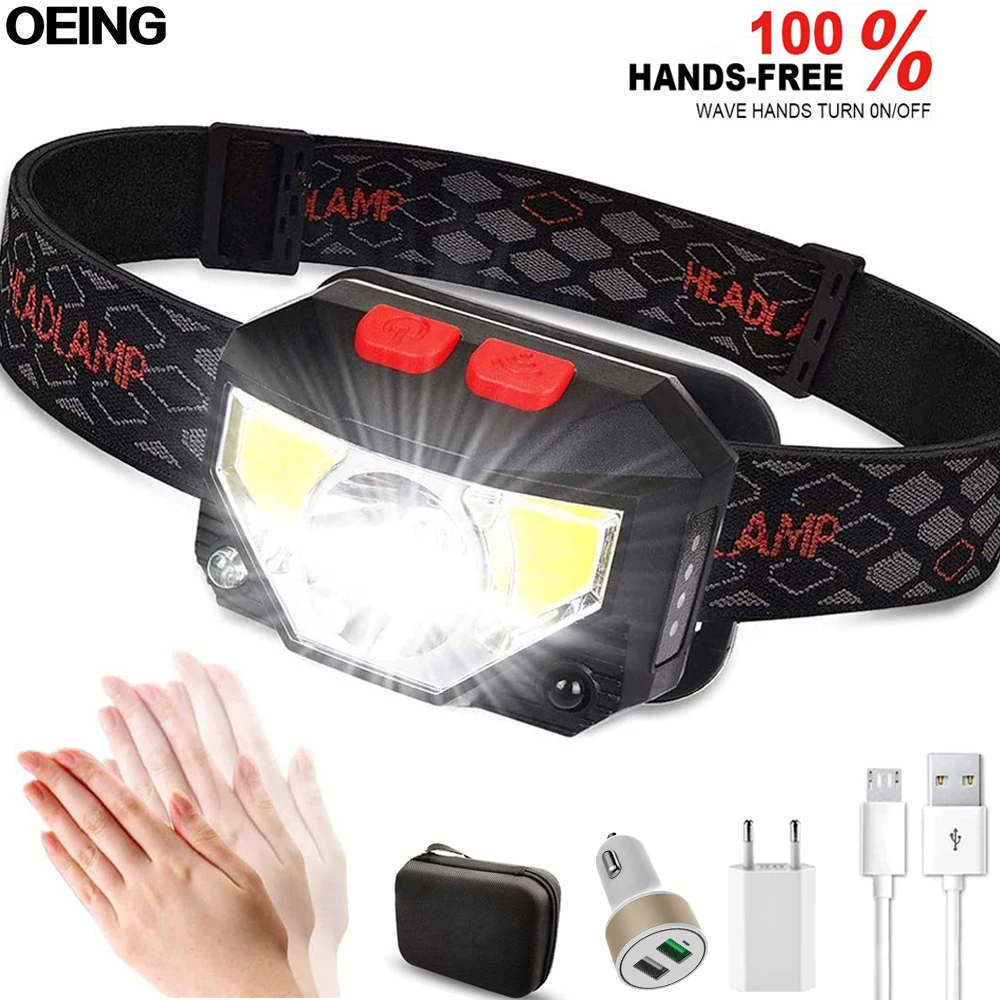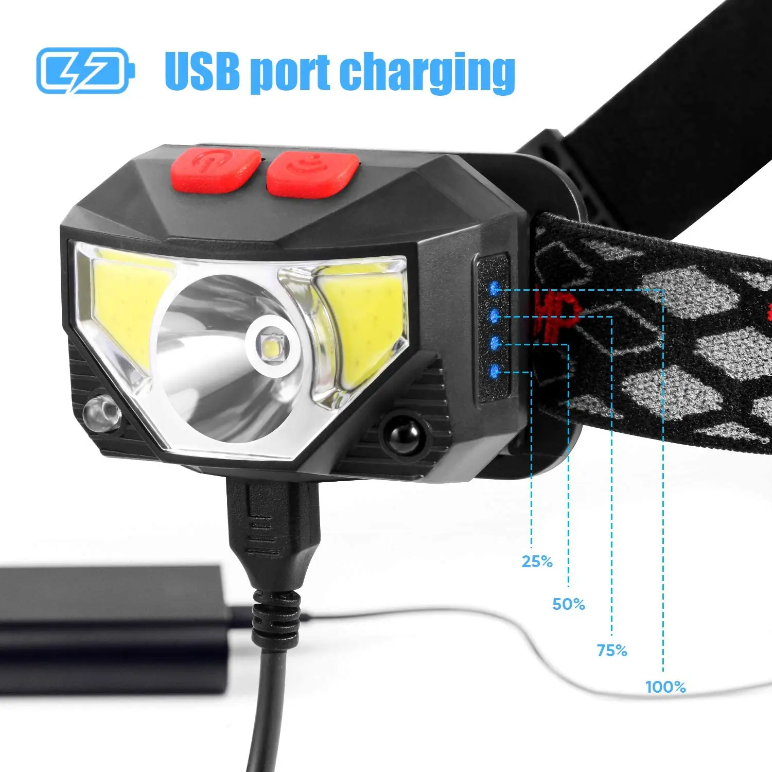 21000 люмен светодиодный налобный фонарь встроенный Батарея USB Перезаряжаемые светодиодный головной светильник движения тела Сенсор головки вспышки света светильник красный + белый светильник
