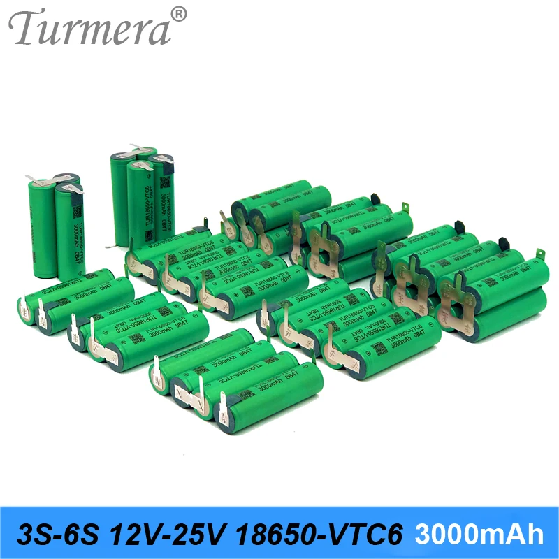 Аккумулятор Turmera 3S 12,6 в 4S 16,8 в 5S 21 в 6S 25 в VTC6, аккумулятор TUR18650VTC6 3000 мА ч 30 А для отвертки 18 в