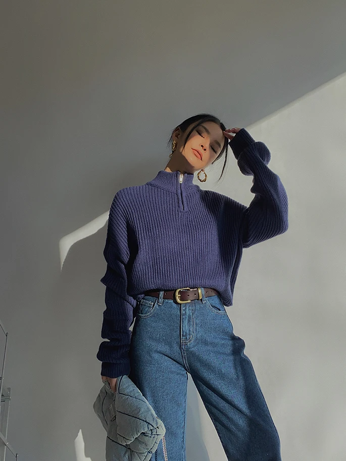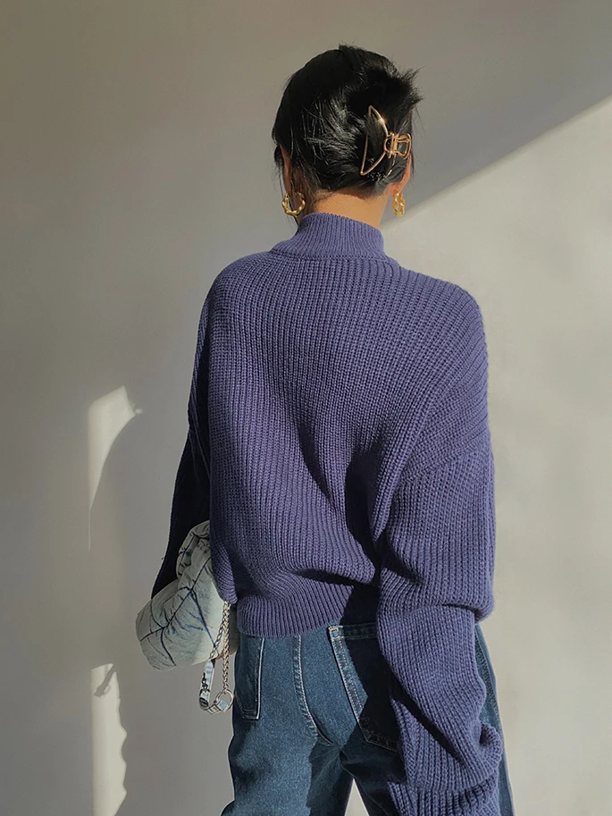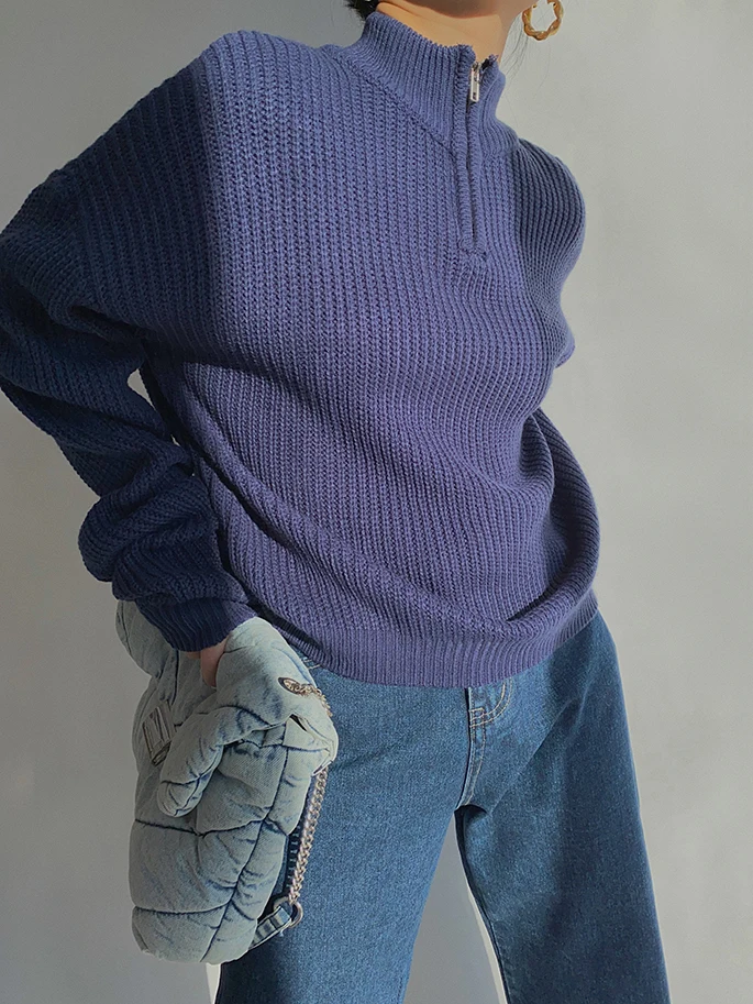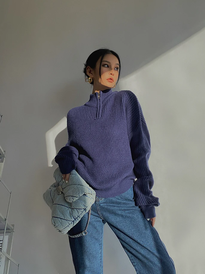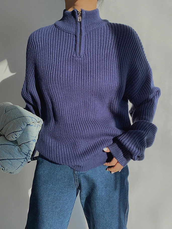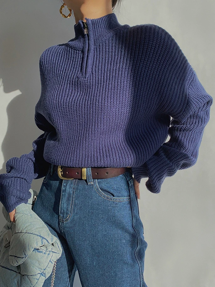 Женский свитер на молнии, с воротником-стойкой и длинным рукавом, Осень-зима, 2020