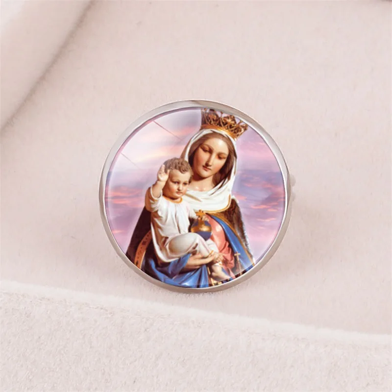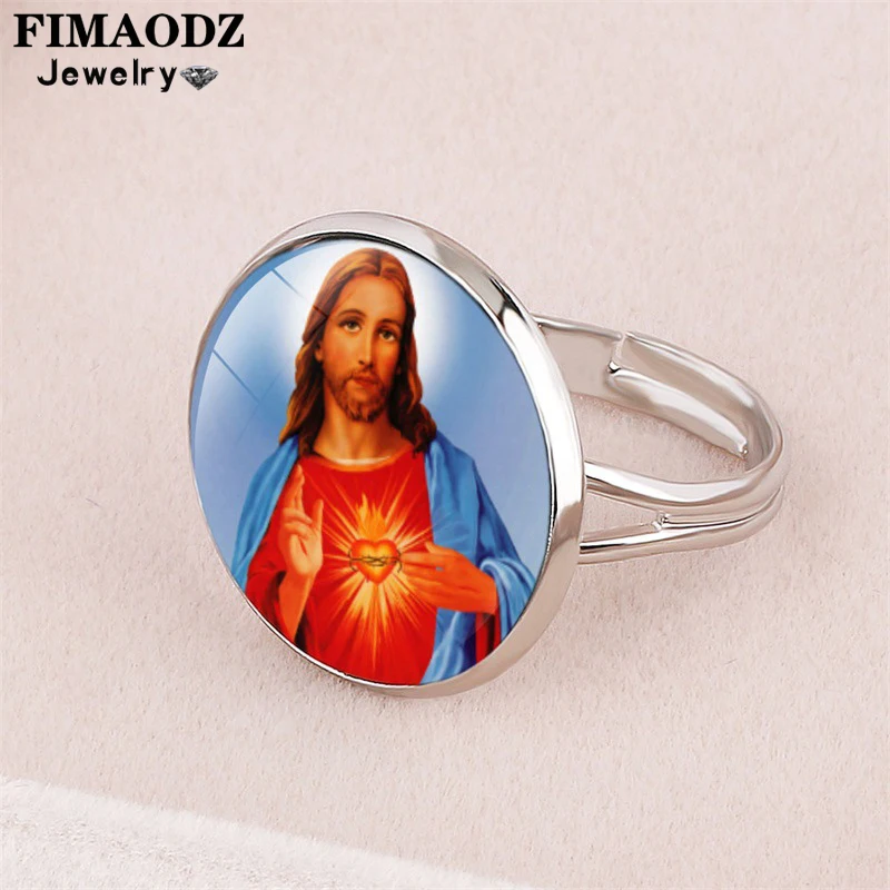 FIMAODZ, Дева Мария, мать ребенка, Иисус, кольцо, стеклянный драгоценный камень, регулируемые кольца для мужчин, женщин, мужчин, католические христианские ювелирные изделия