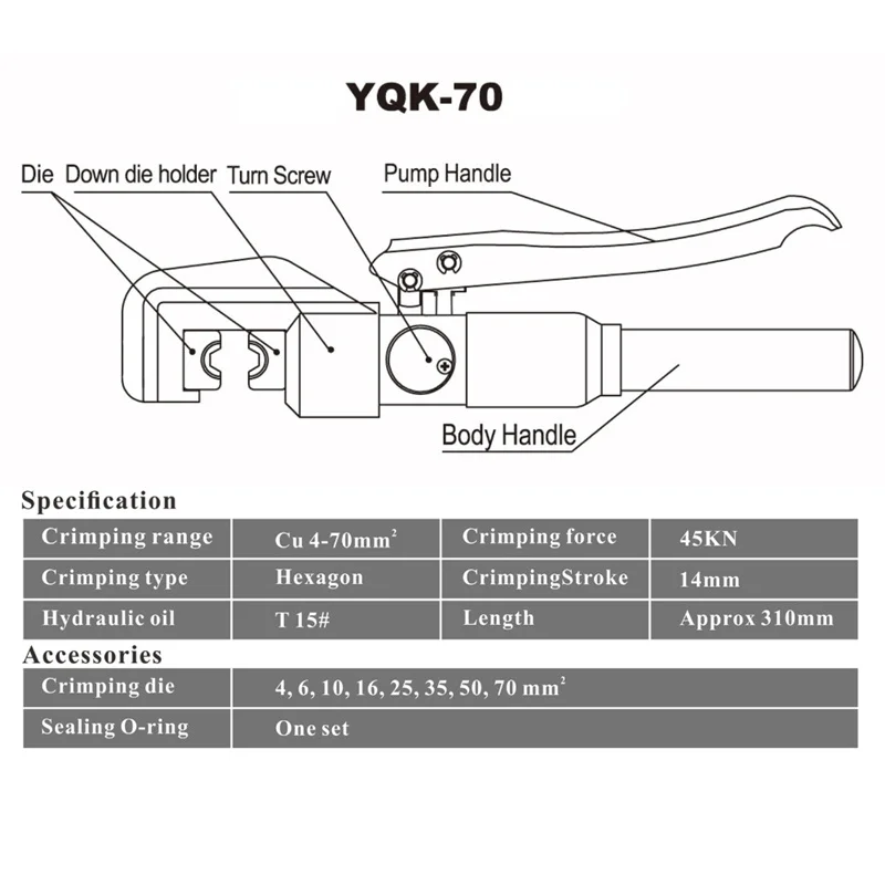 Гидравлический обжимной инструмент плоскогубцы, инструмент для сжатия кабельный обжимной инструмент 4-70 мм, 2 уровня давления