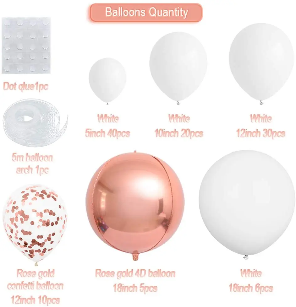 113 шт., белые шары, комплект гирлянды, шар цвета розового золота, арка, свадьба, деко, украшение для девичника, детского дня рождения