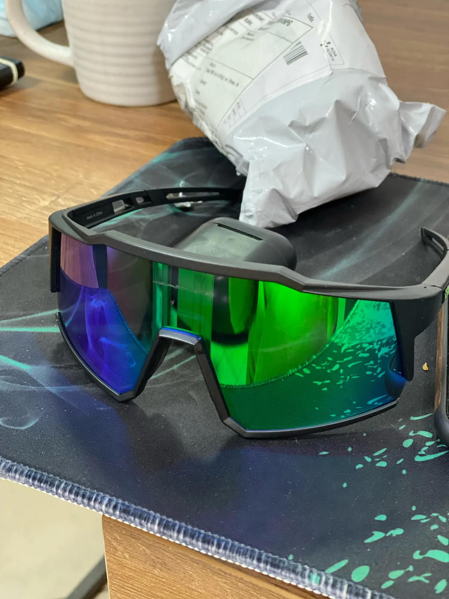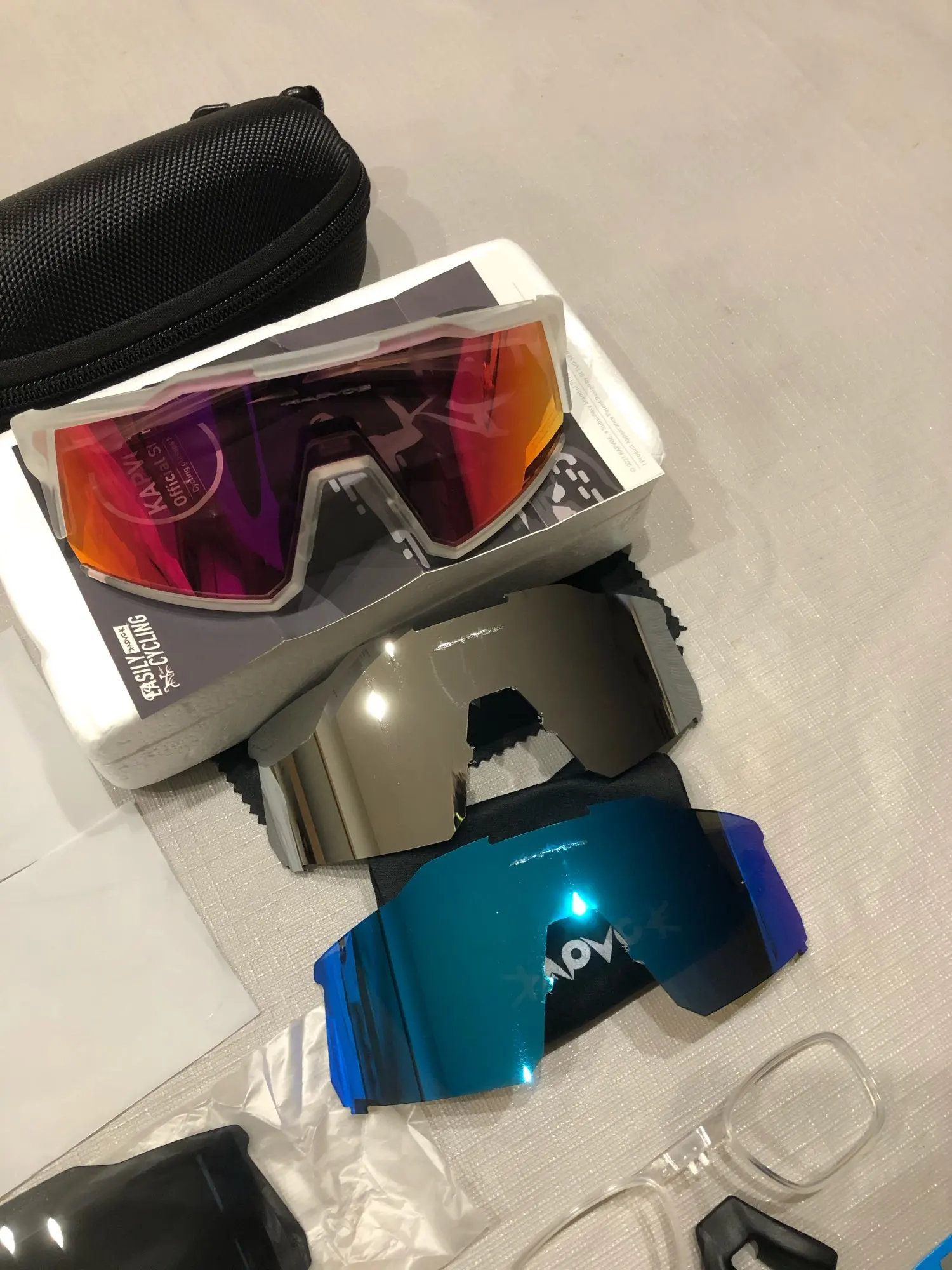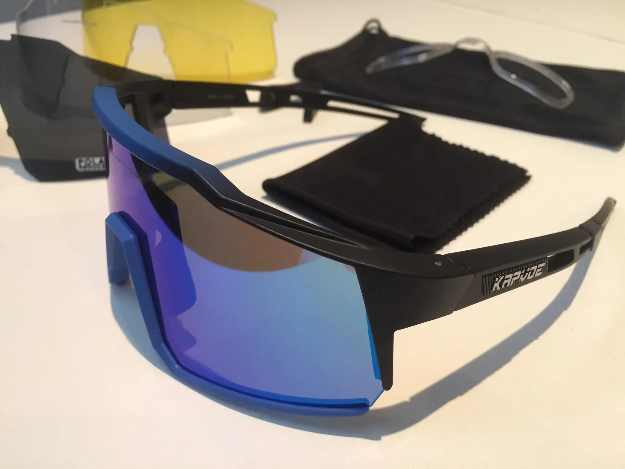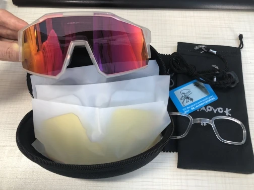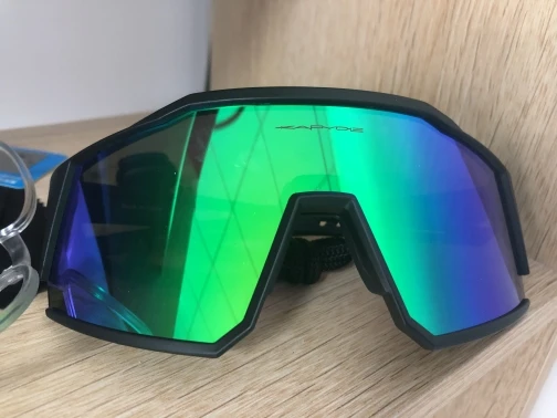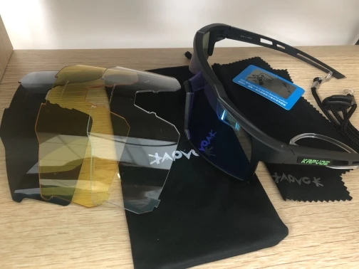 Качественные велосипедные очки. Компания: Чехол, установка очков по рецепту, 4 разных экрана (черный поляризованный, красный зеркальный, желтый и прозрачный). Легко заменить / заменить. Они также отлично подходят для одежды в стиле 80-х / киберпанк. Доставка из той же страны / региона очень быстрая. Спасибо, продавец. A ++