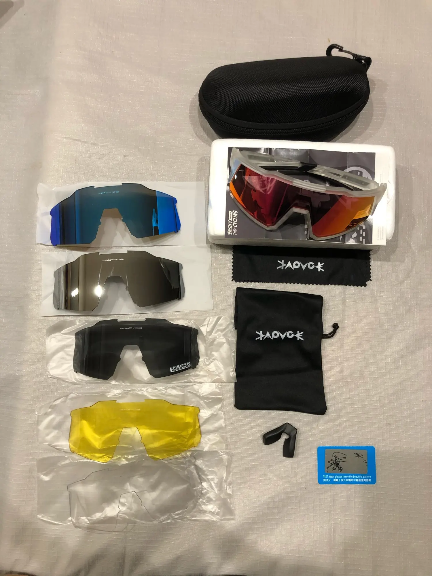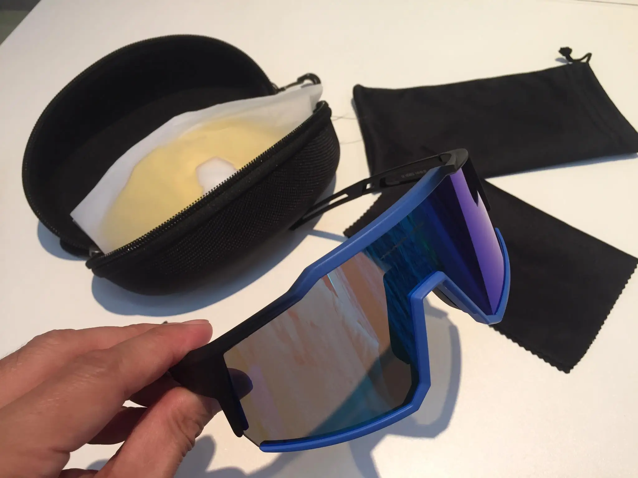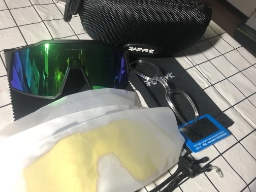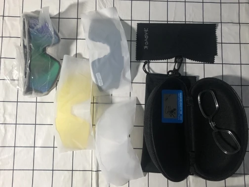 Очки подошли и мне понравились. немного увеличился. Пока не катался, на улице не тестировал. Подходящая тряпка представляет собой протирочную ткань, которую используют для активного шнурка для верховой езды, чтобы очки не летели. Объектив снимается легко, деформации нет, но есть небольшое увеличение, надеюсь не повлияет на дорогу. Поскольку я люблю скорость, пожалуйста, ищите препятствия заранее. = В целом очки простые, легкие, пластиковые, стильного внешнего вида, подходят новичкам. знак равно