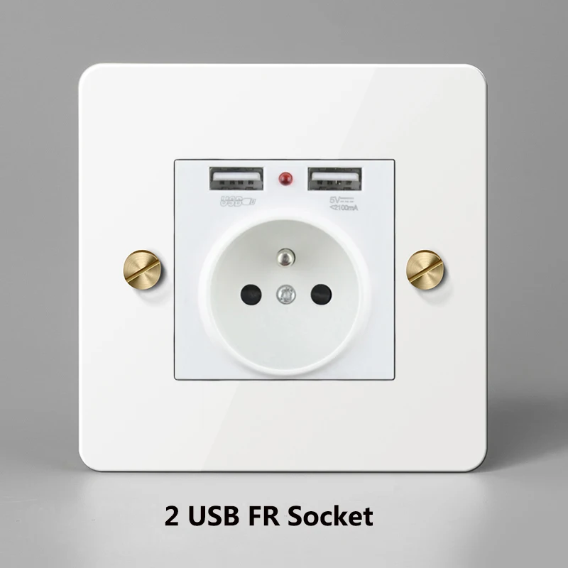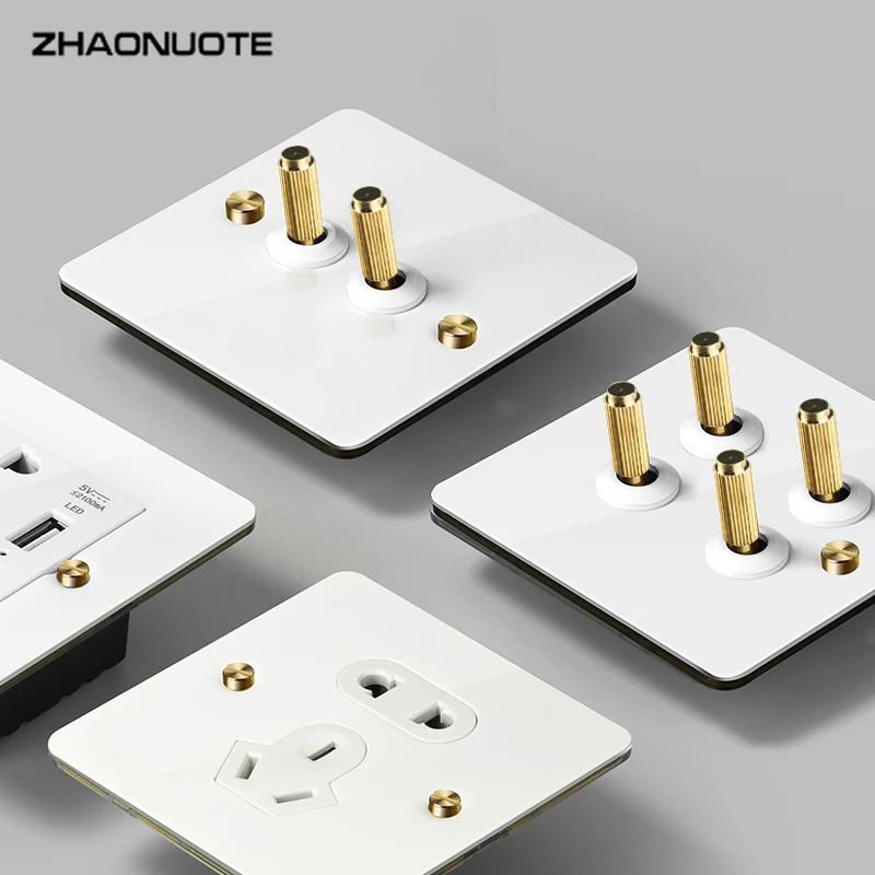 Настенный переключатель с золотым рычагом, 1-4 клавиши, 1 канал, 2 канала, настенная лампа, белый переключатель, панельная USB-розетка из нержавеющей стали
