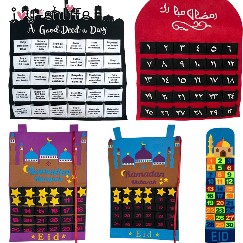 Новый Адвент-календарь ИД Мубарак, 30 дней, подвесной фетровый календарь, исламский обратный отсчет, украшения на Рамадан, ИД Рамадан, Мубарак, подарки