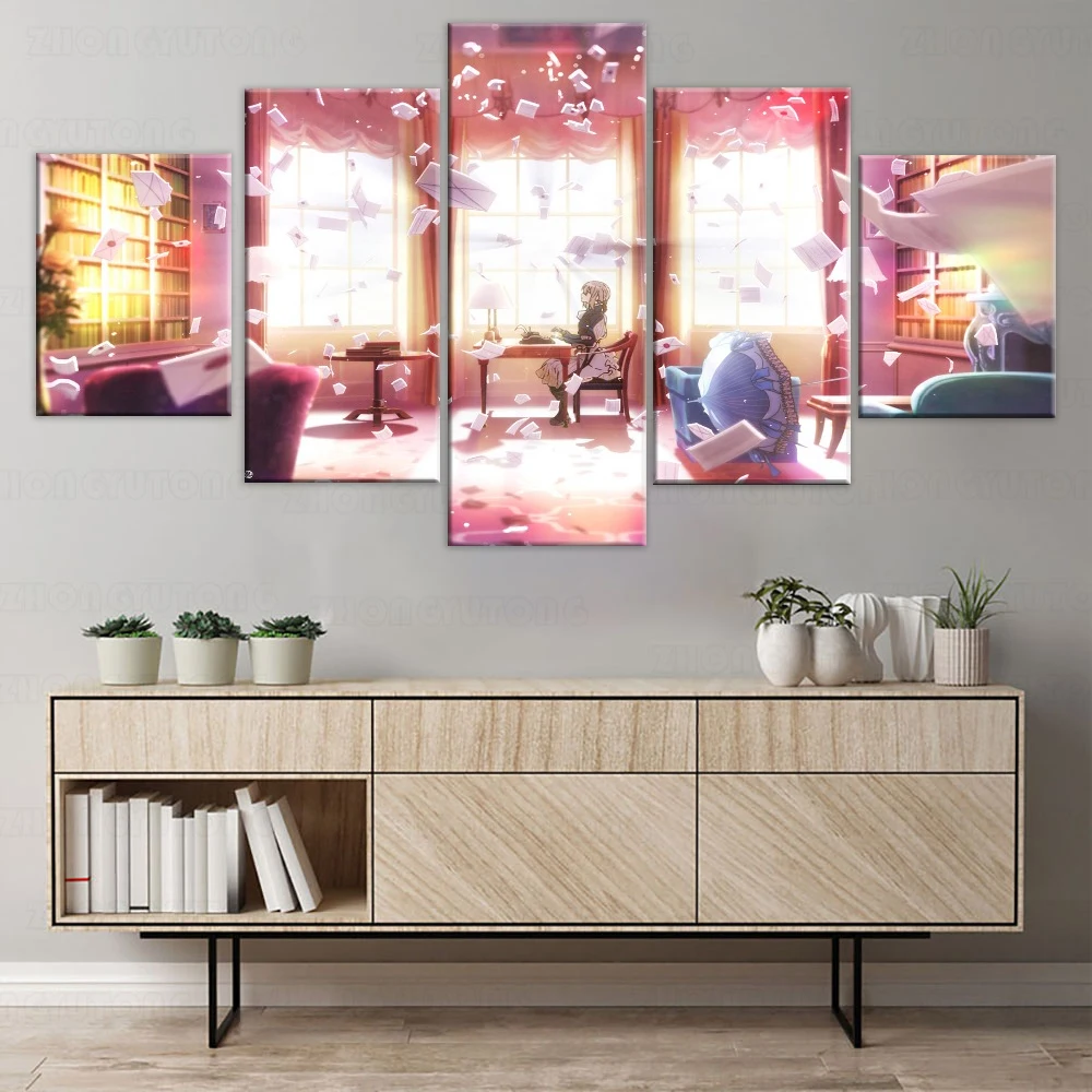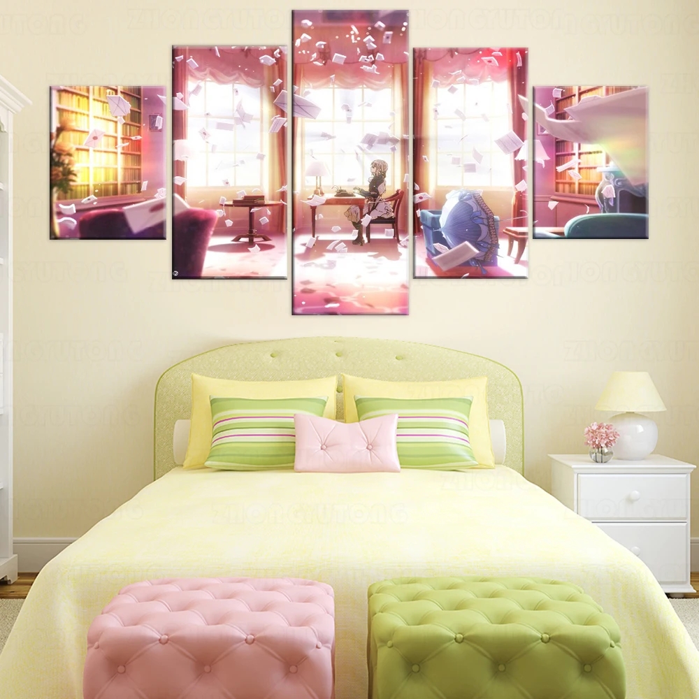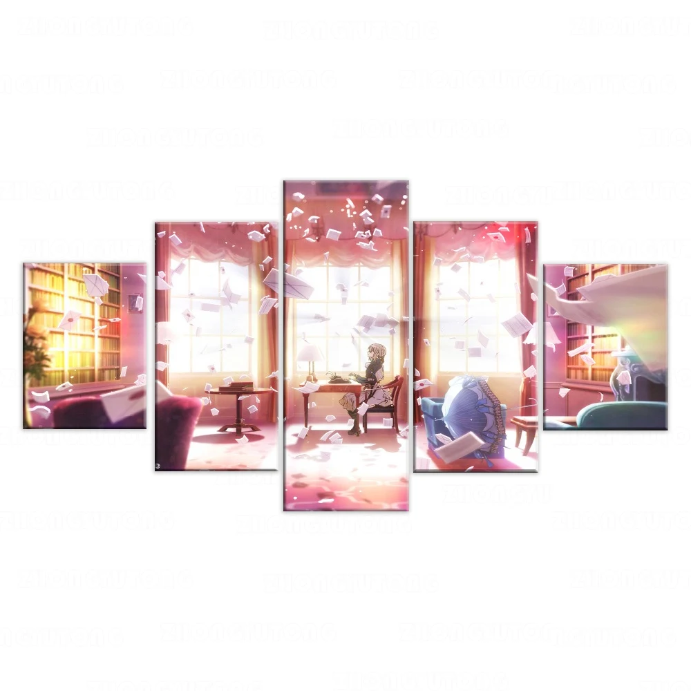 Фиолетовый Evergarden, искусство на стену в стиле аниме, искусство на стену, 5 шт., картина на стену, HD Печать на холсте для гостиной