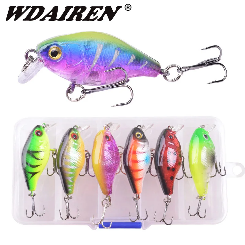6 шт.лот мини кренкбейт, смешанные цвета, плавающие воблеры для рыбалки, набор приманок, искусственные приманки, искусственная рыба, гольян, комплект твердых приманок