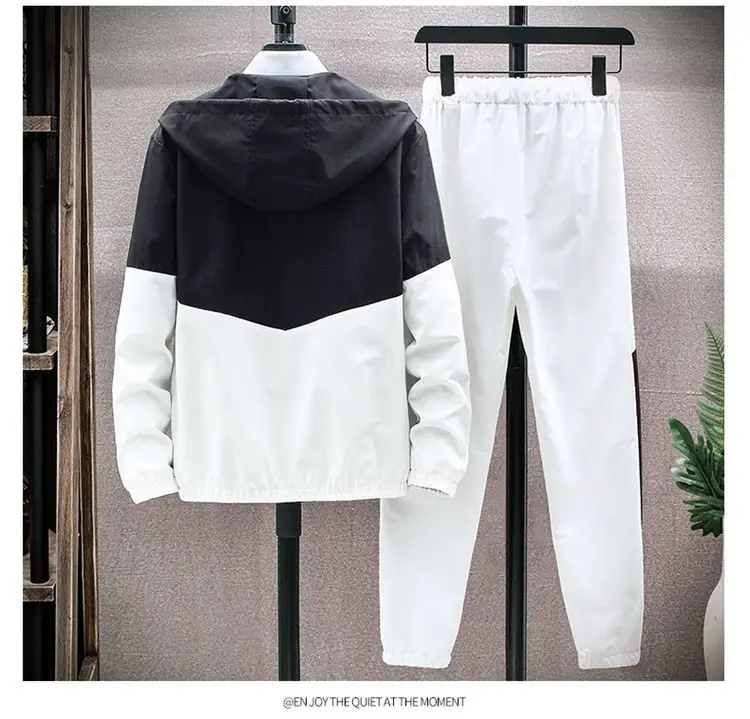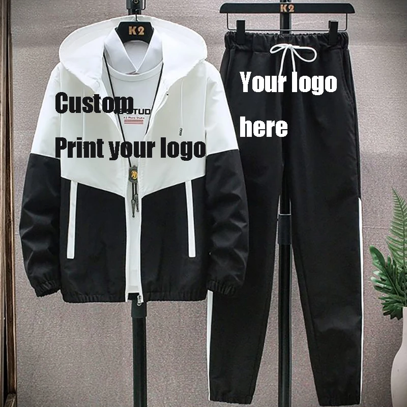 Костюм спортивный мужской размера плюс 2 предмета, ветровка, тонкий спортивный костюм с индивидуальным принтом, для фитнеса, в стиле пэчворк